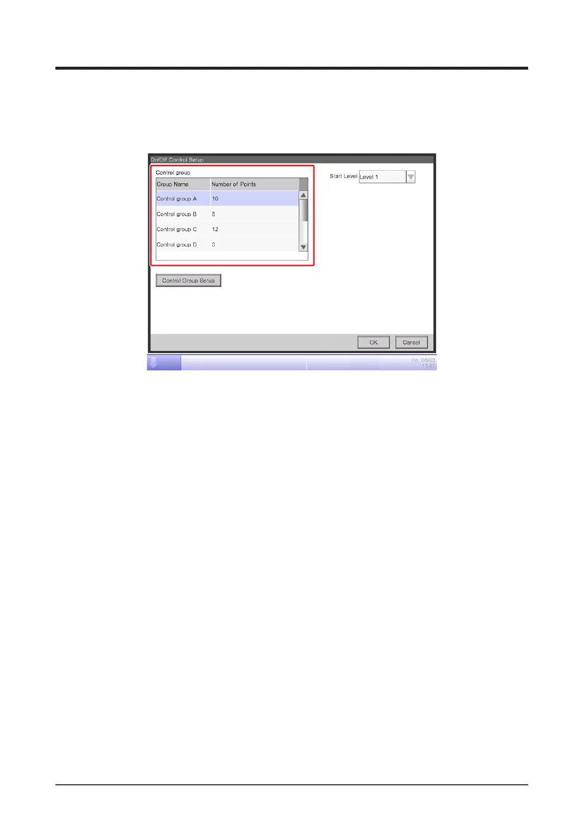 1. On the Control Setup screen, select On/Off control from the Control group list and touch the