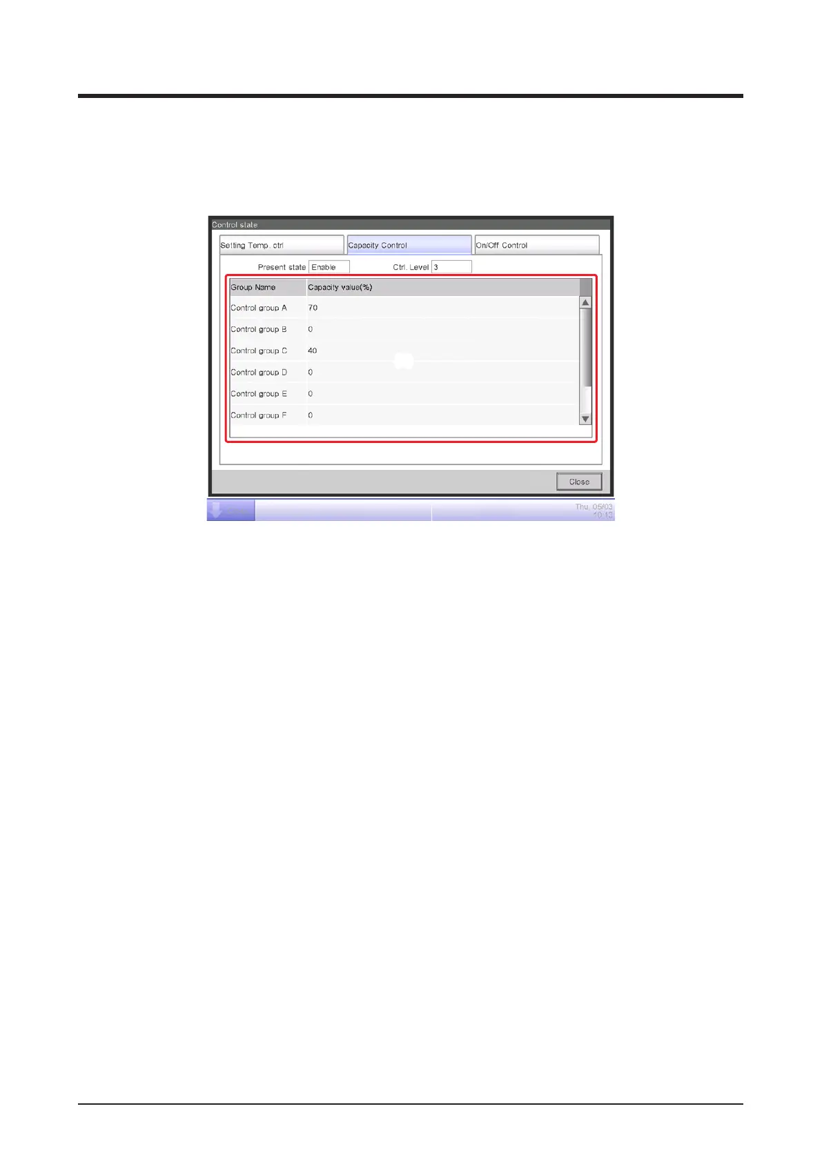 • Capacity Control: Control Status screen
