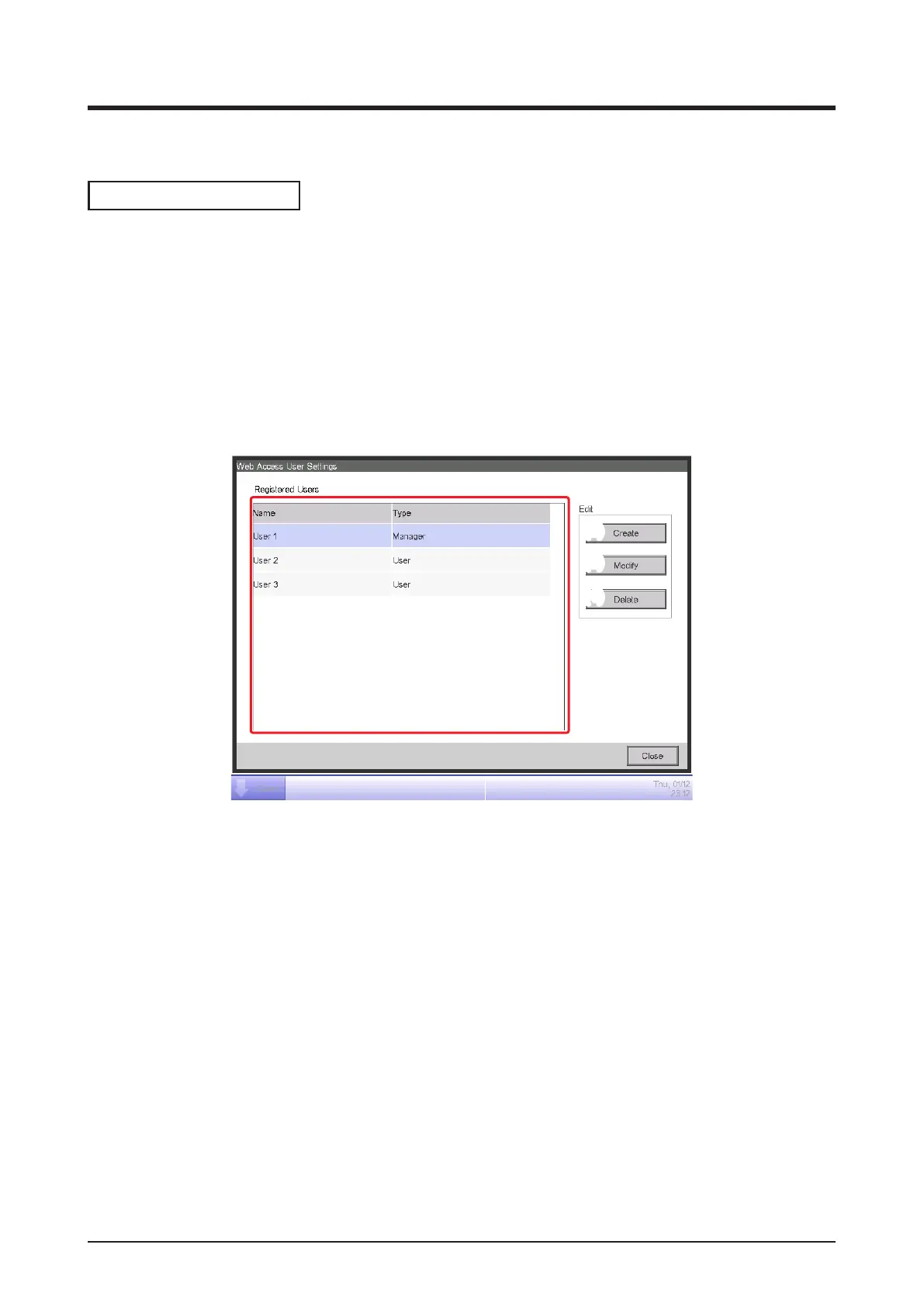 display the Web Access Users Settings screen (see “4-5 Menu List screen: System Settings