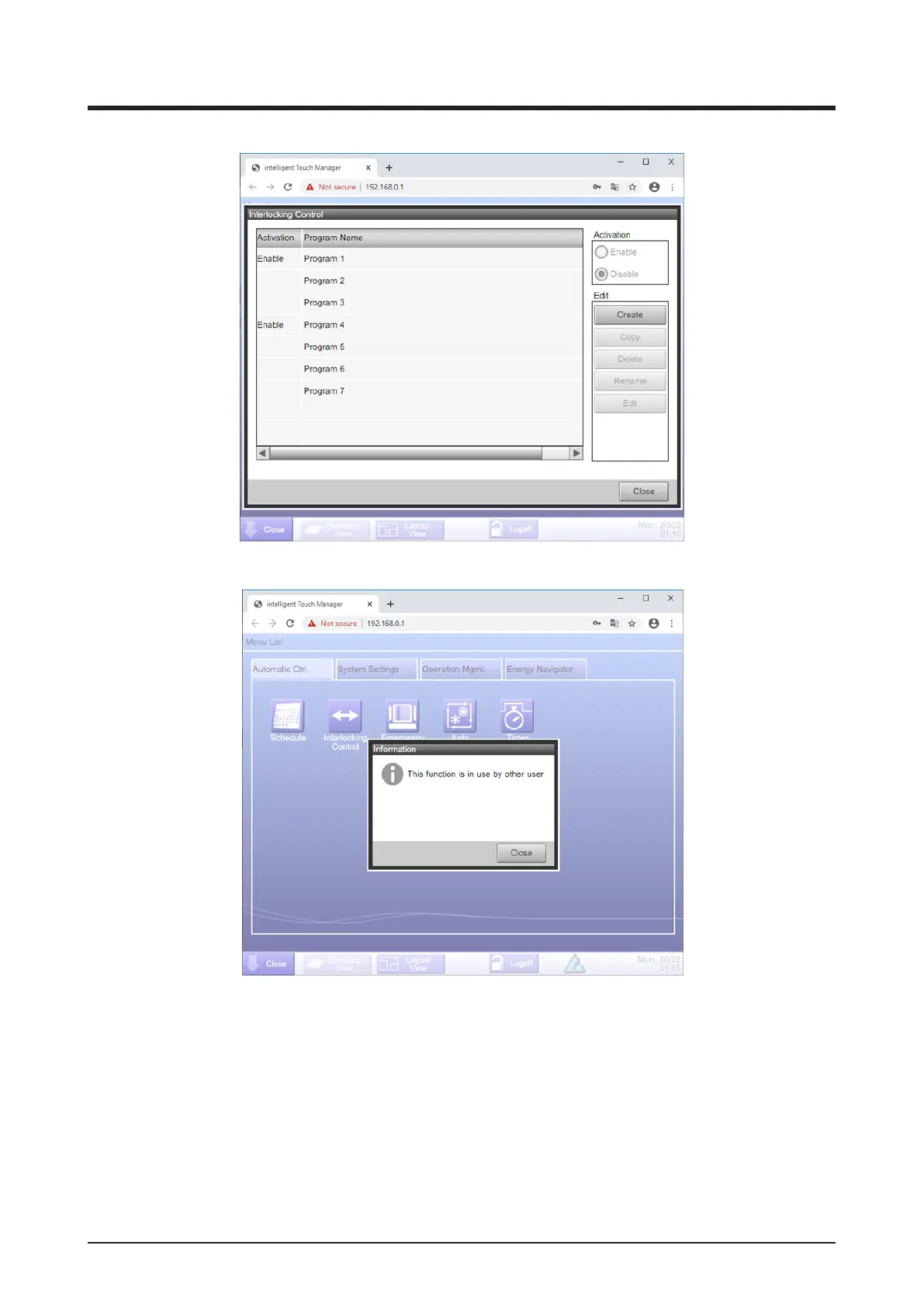 Information dialog is displayed when the Web user B presses the Interlock button.