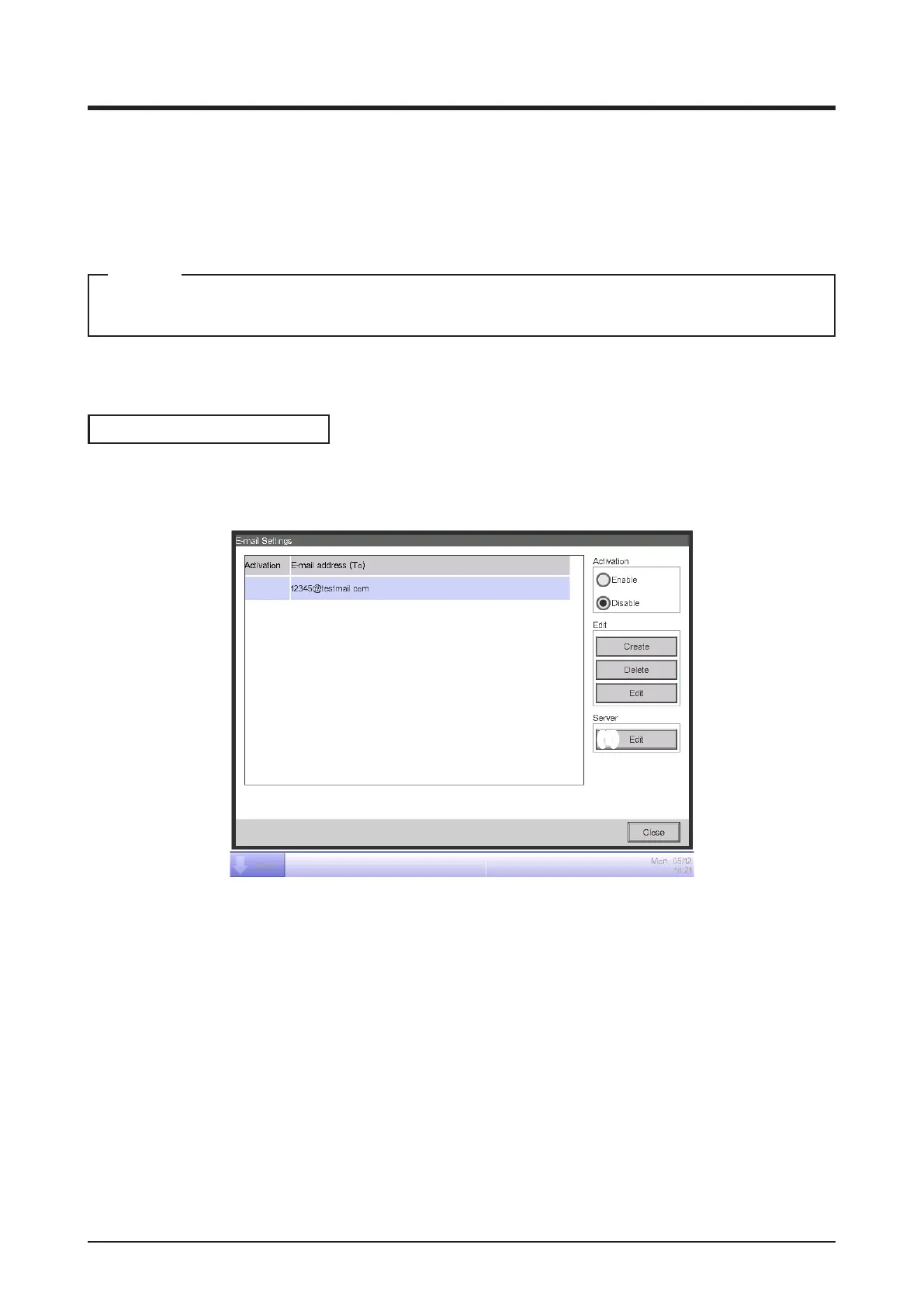 Touch the E-mail button on the System Settings tab of the Menu List screen and display the E-mail