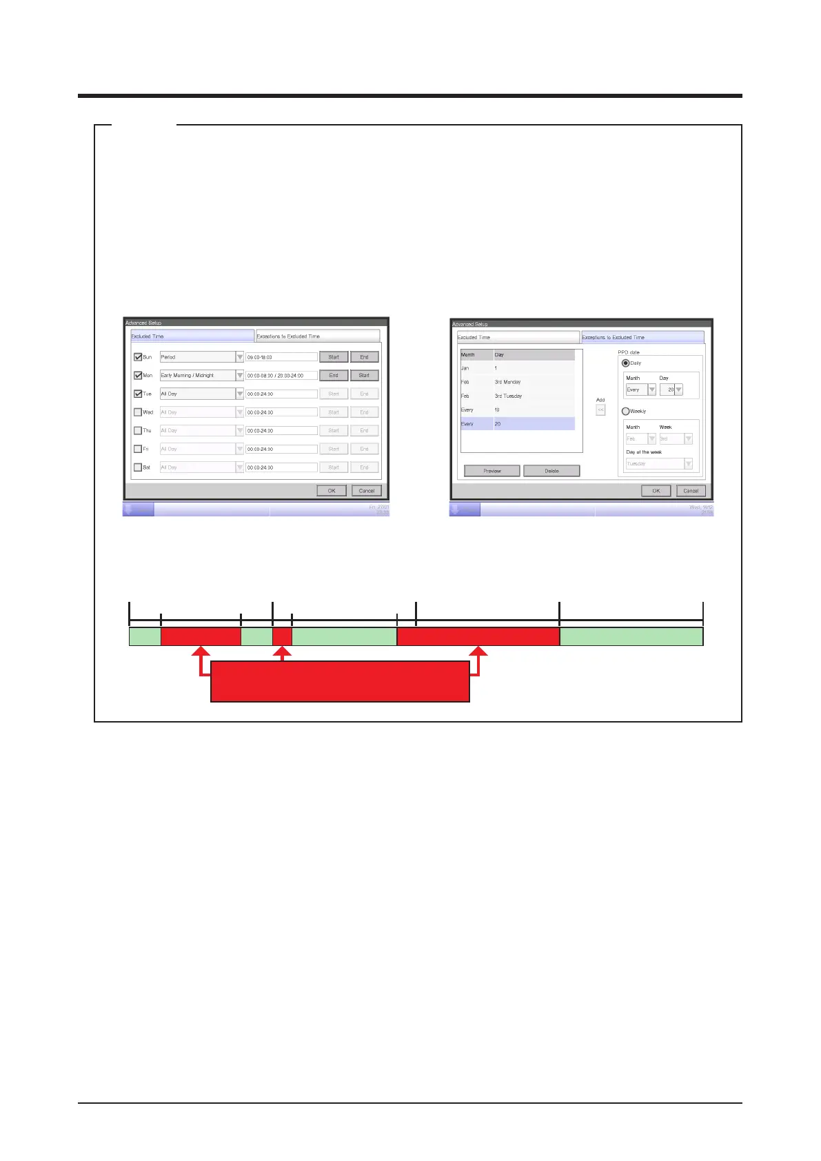 In this screen, you can set times to be excluded from the data collection period. Data for