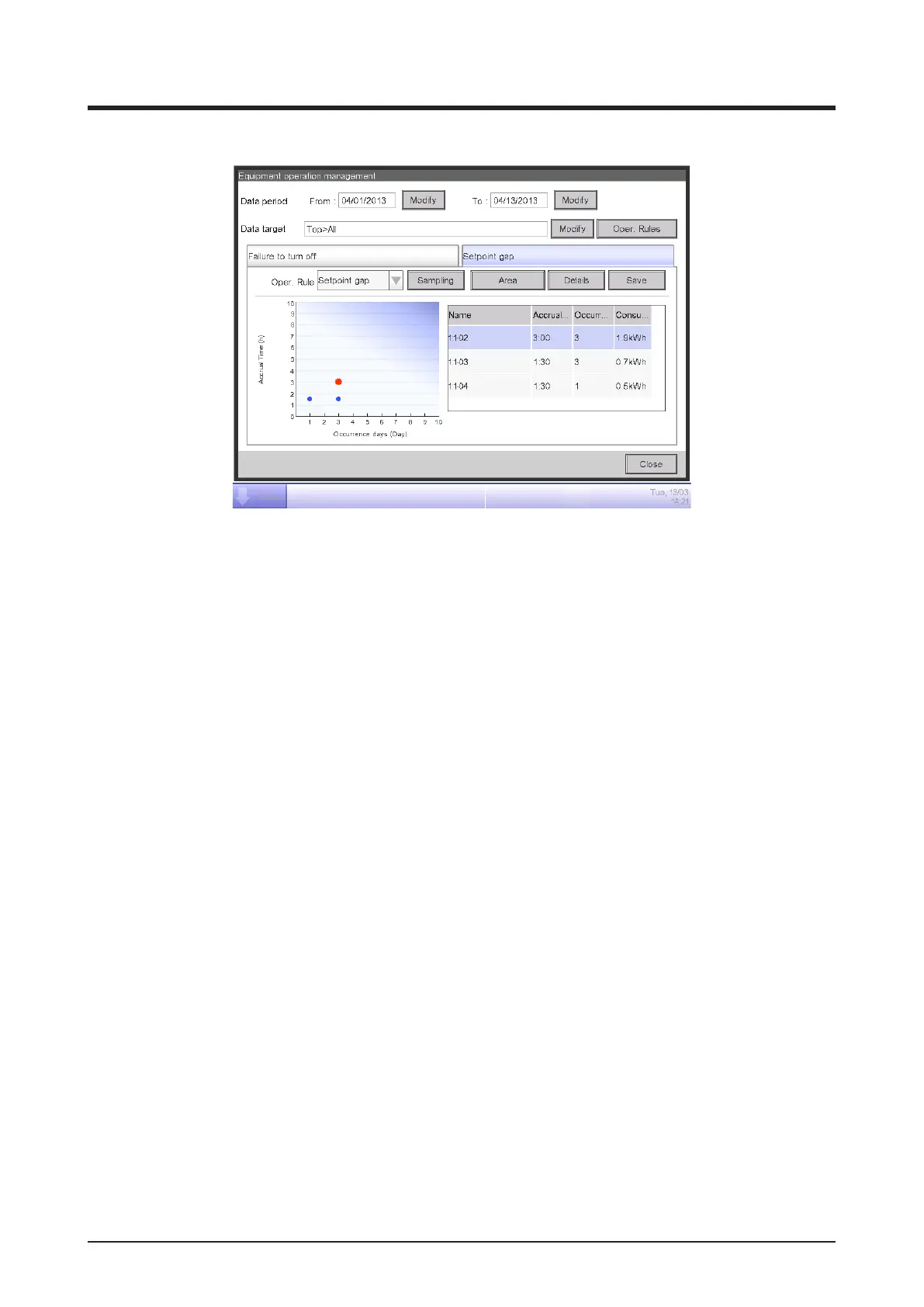 Failure to turn off Tab (Equipment operation management Screen)”).
