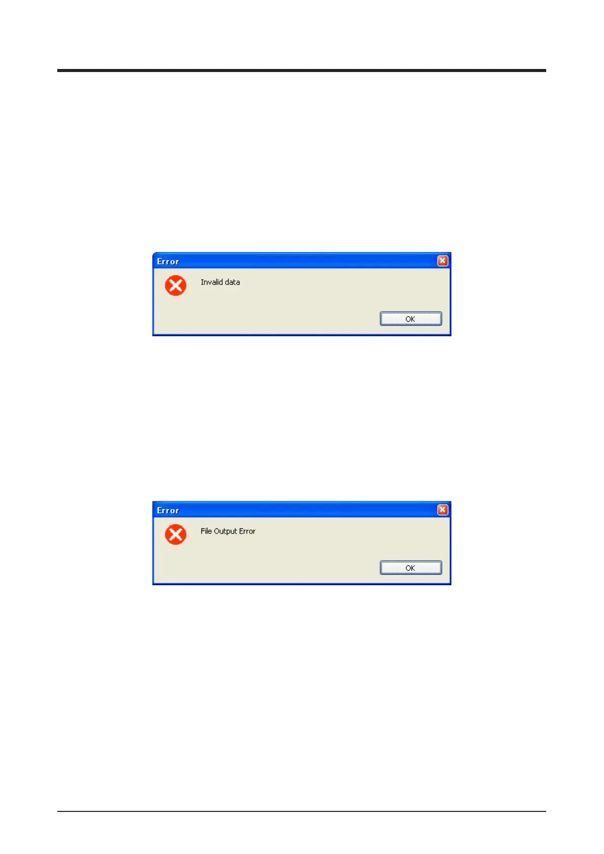 • If the “File Output Error” message appears, the following causes may be considered.