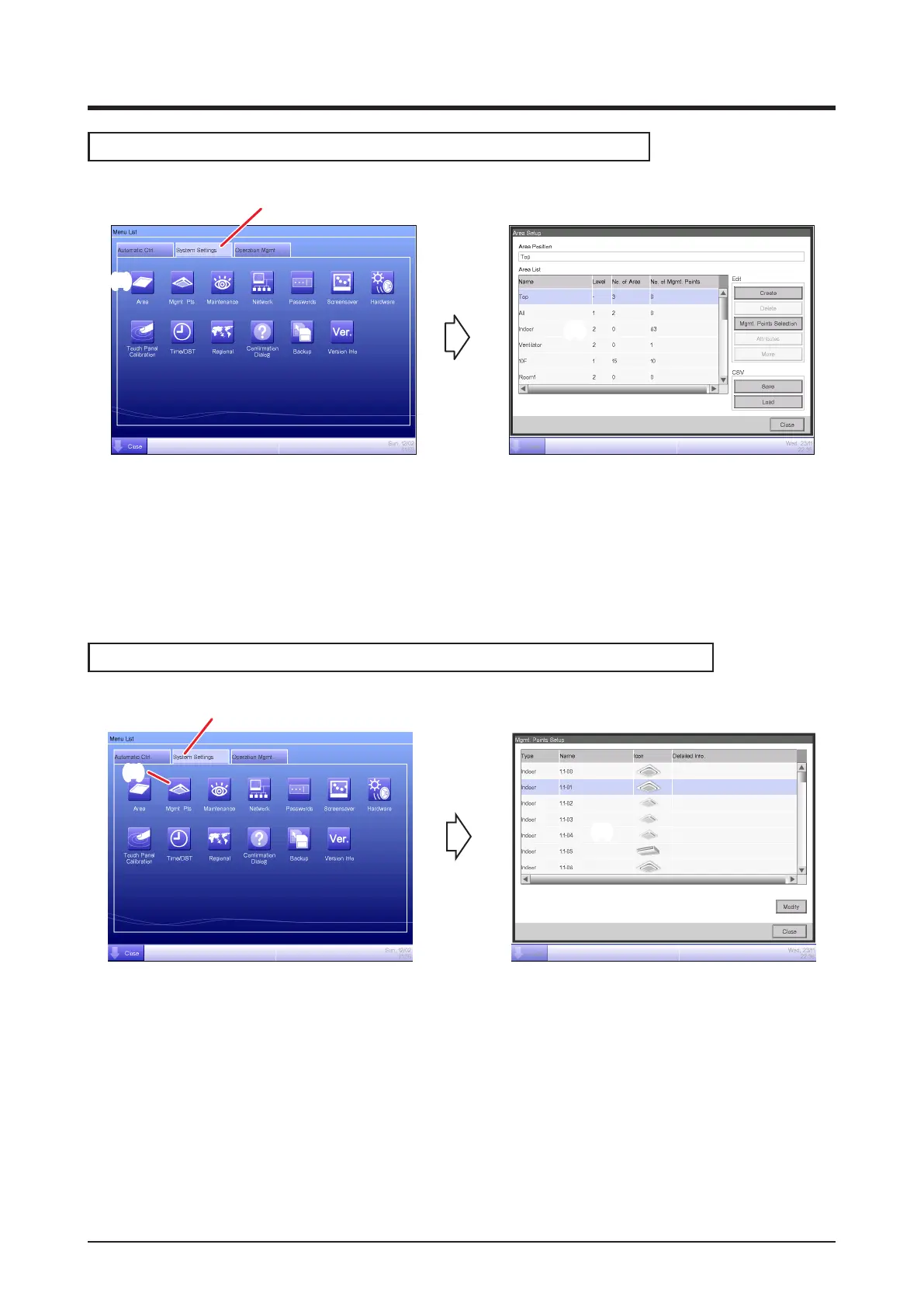 (For detailed operation, see “6-2 Setting up a Management Point”.)