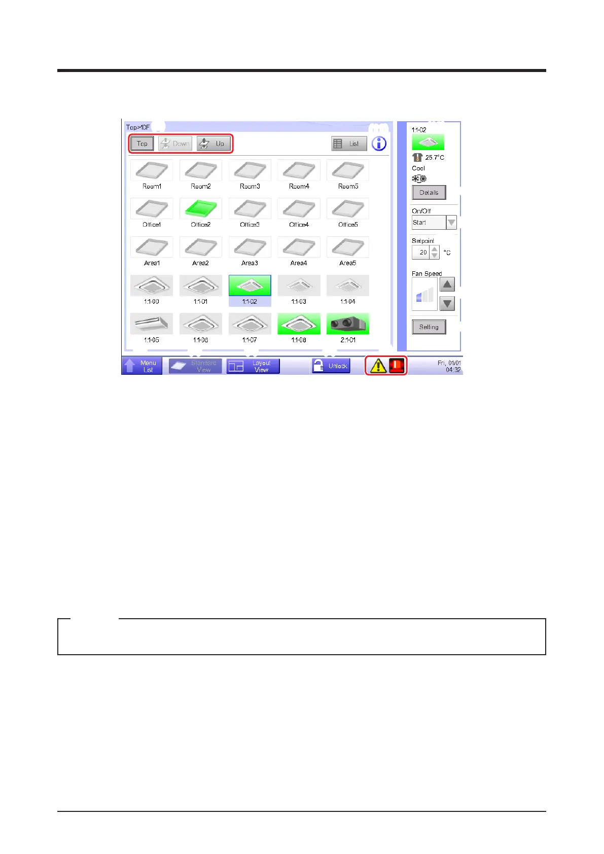 Switches the screen to the Layout View, which displays icons on a oor plan.