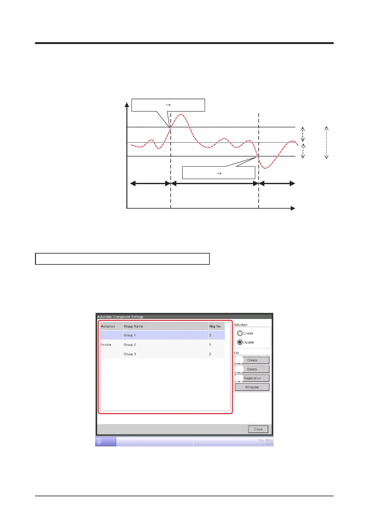 1. Touch the Auto Changeover button on the Automatic Ctrl. tab of the Menu List screen and