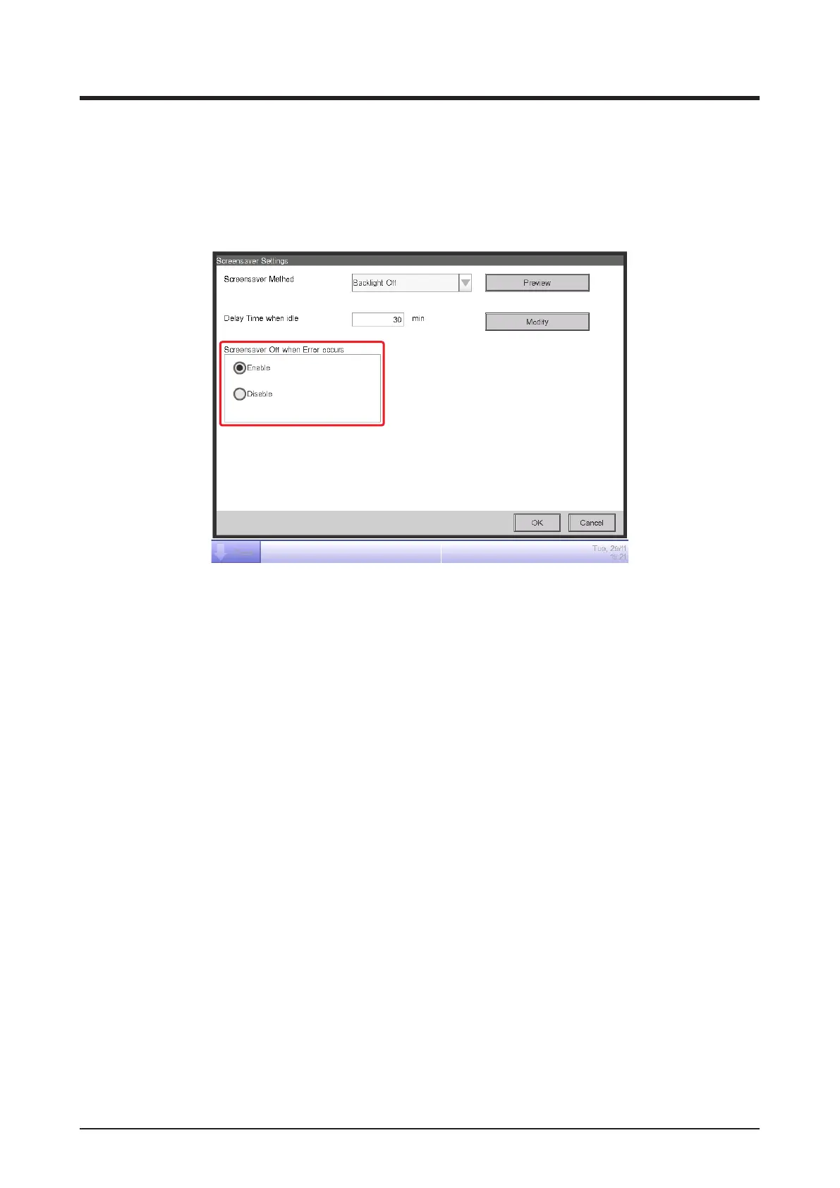 occurred, select the Screensaver Off when Error occurs radio button (4).