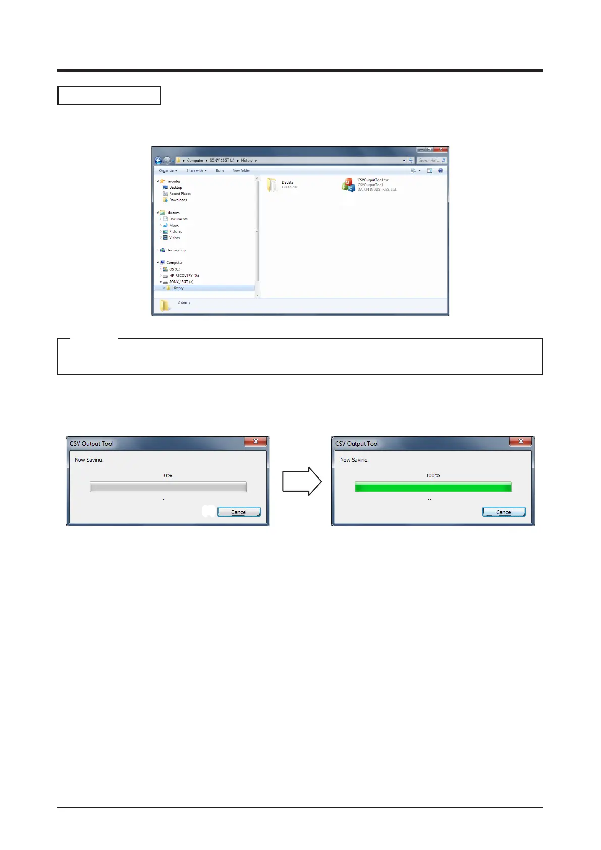 2. Double-click CSVOutputTool.exe (1) to start the CSV output tool. Data conversion starts. During