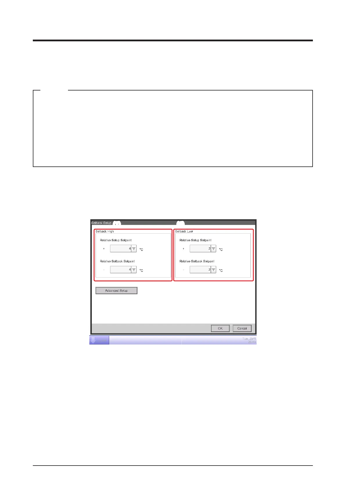 the Setback Setup screen (see “4-5 Menu List screen: Automatic Ctrl. Tab”).