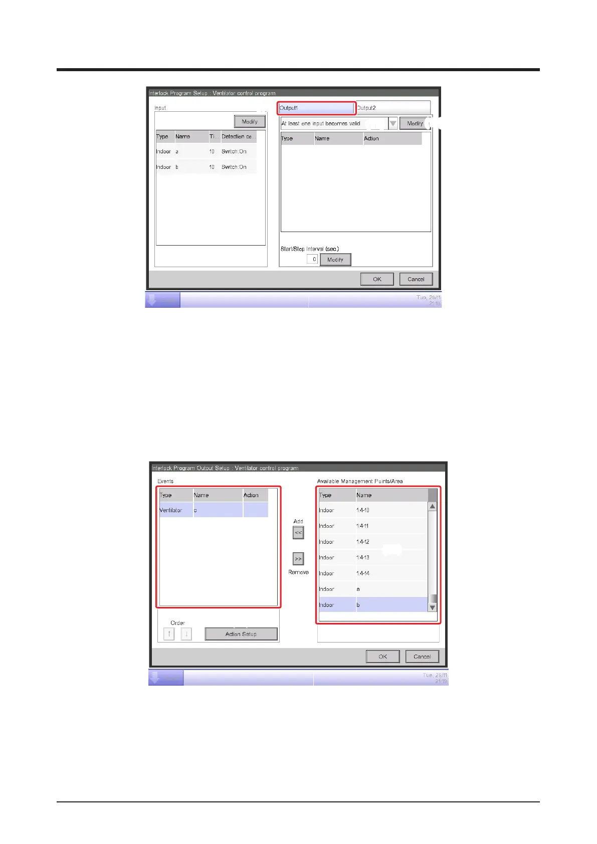 Touch the Modify button (12) and display the Interlock Program Output Setup screen.
