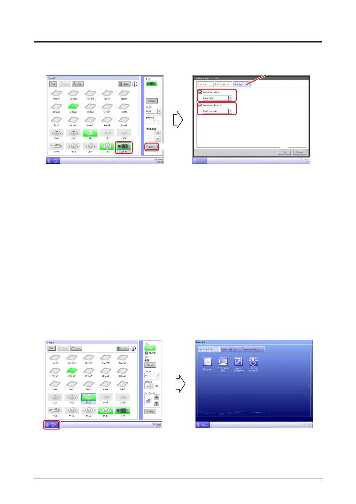 (For detailed operation, see “4-5 Menu List Screen Automatic Ctrl. Tab”.)