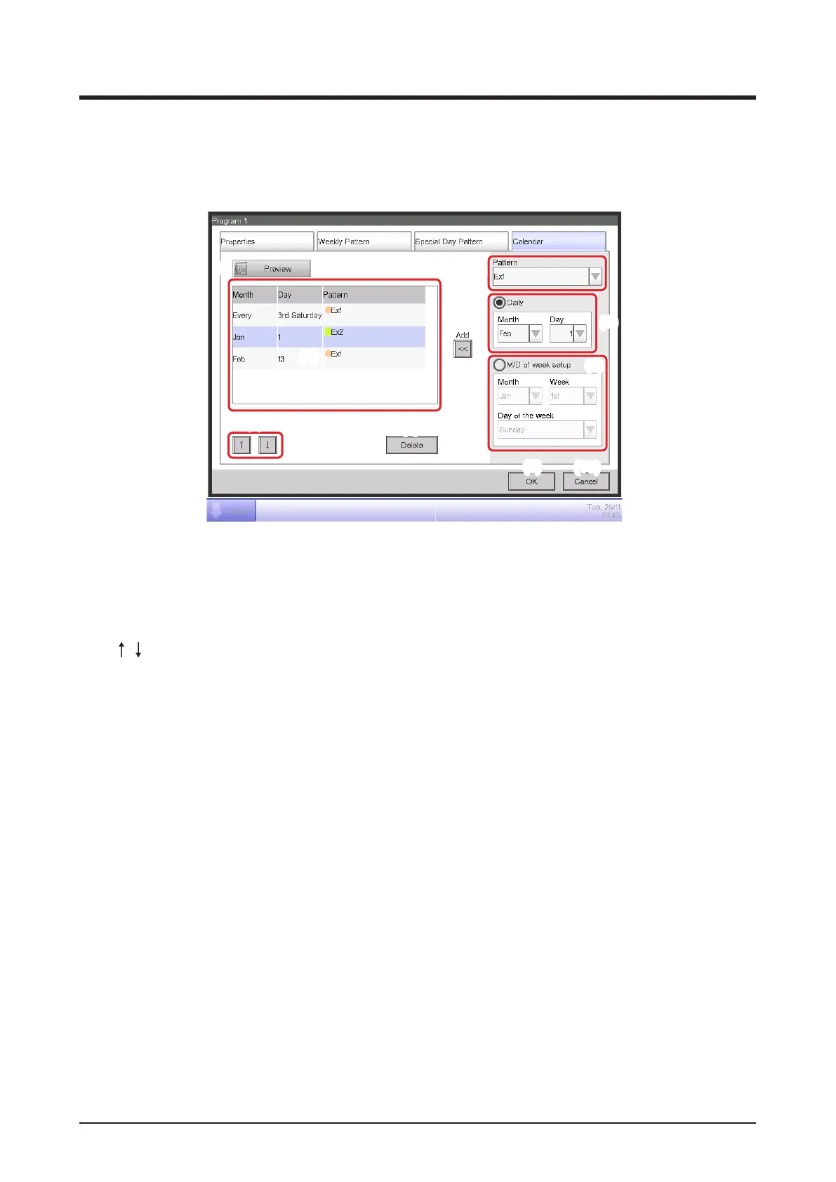 Moves up and down the order of the special day pattern selected in the Calendar Settings list.