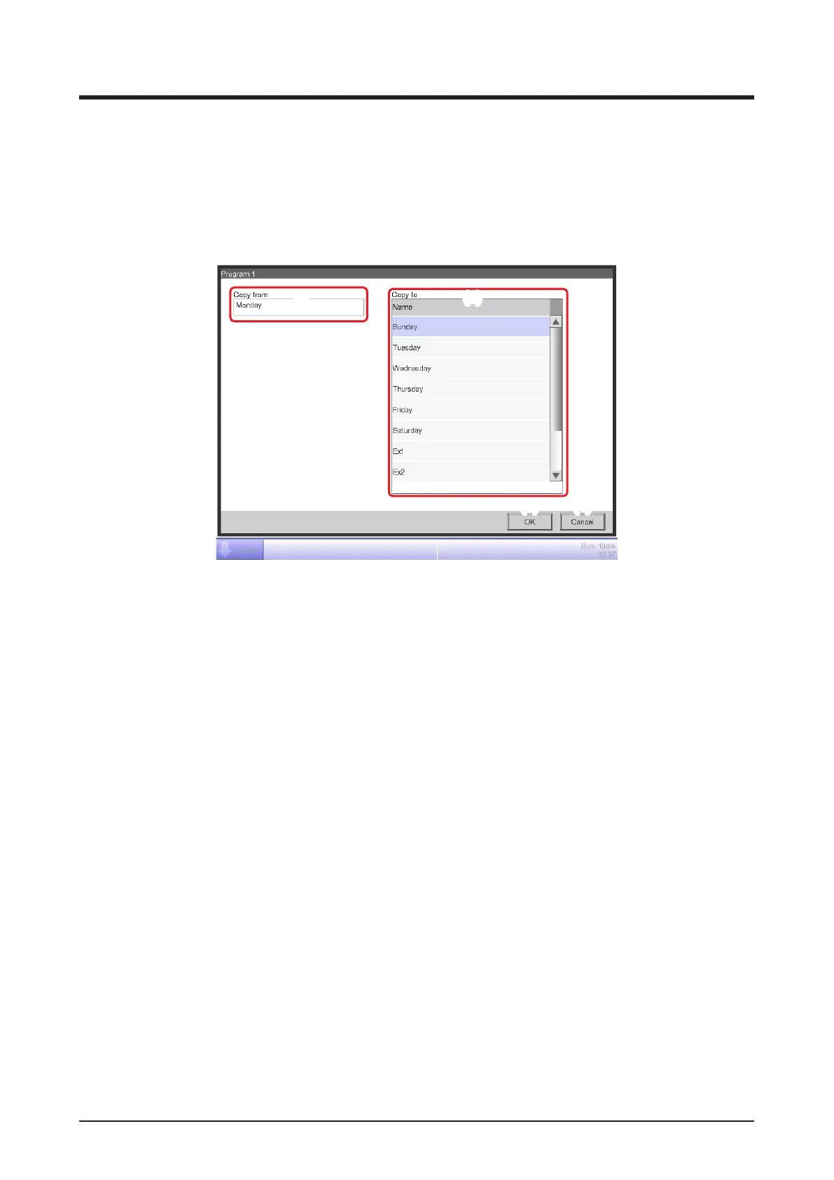 Displays a list of days of the week/special days from which to select the destination of the copy.
