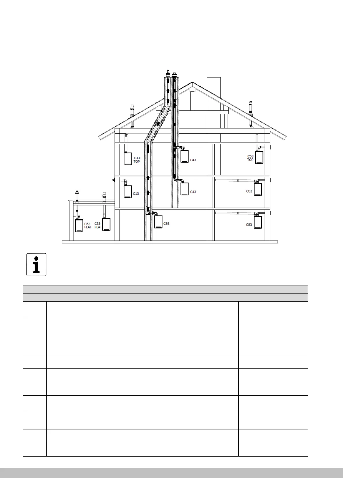 existing duct. Flue gas discharge via the roof. Air supply and flue gas discharge are in