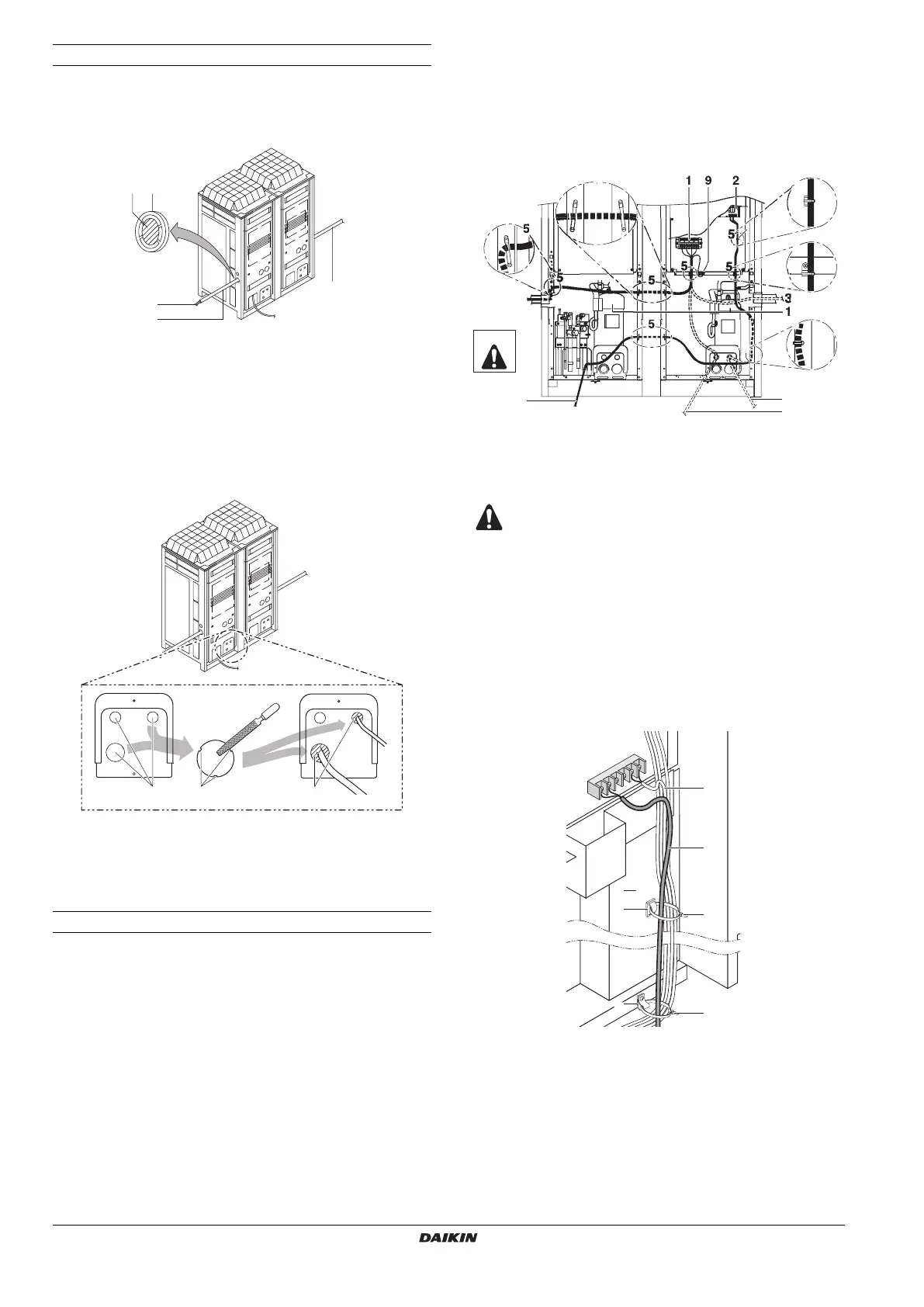 5 Clamp the wiring with field supplied clamps.