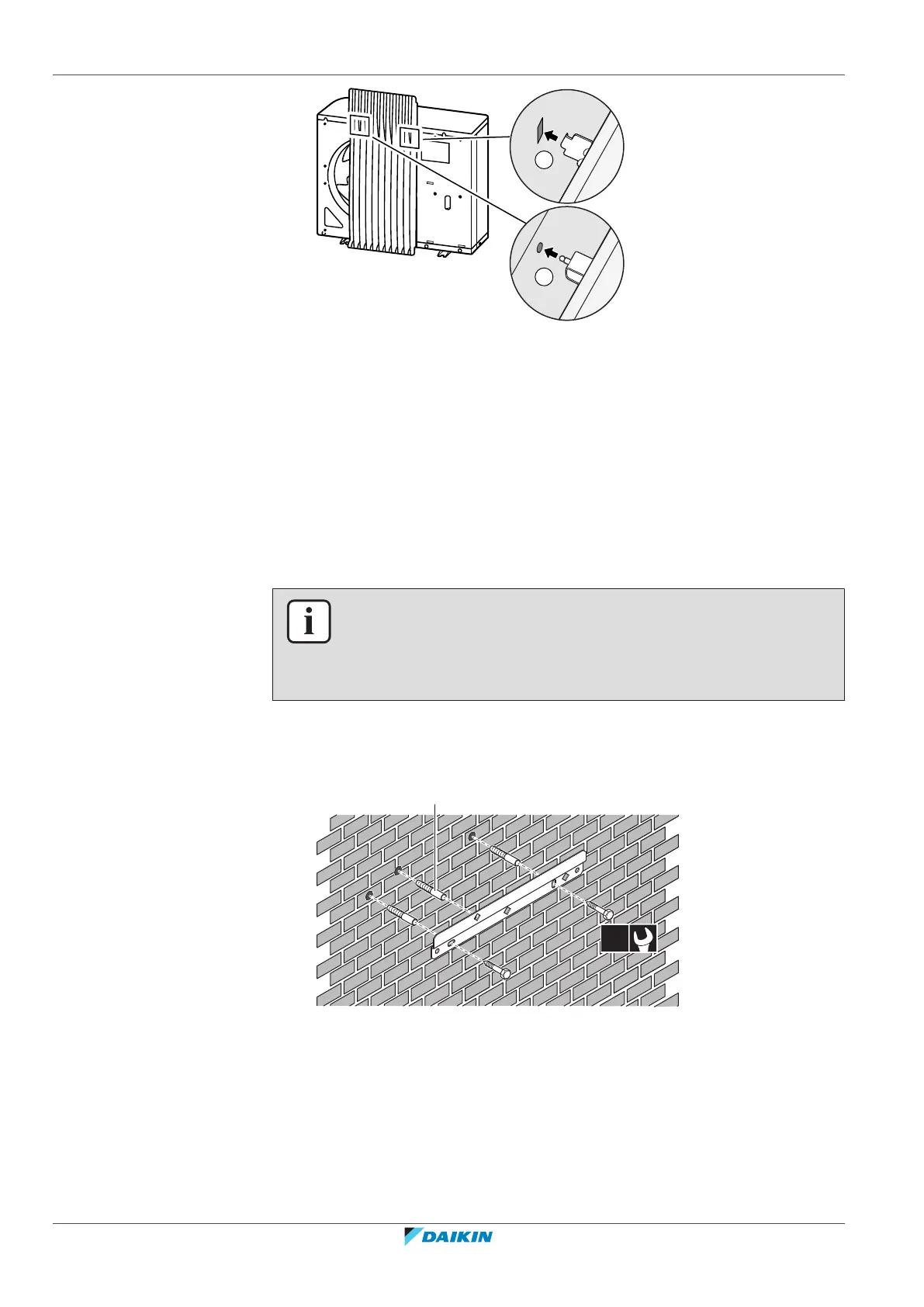1 Fix the wall bracket (accessory) to the wall (level) with 2 Ø8mm bolts.