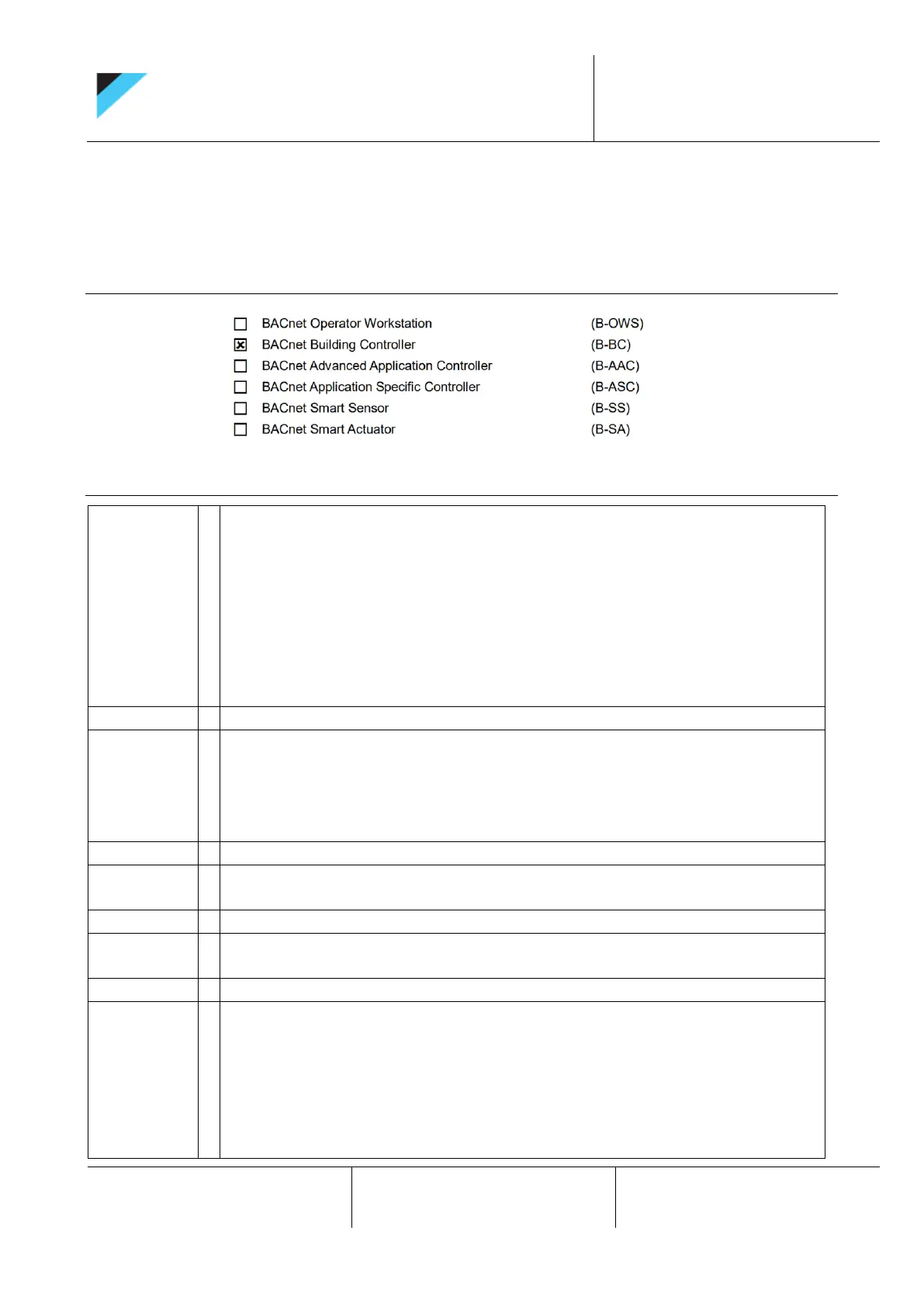 7.1 BACnet standardized device profile
