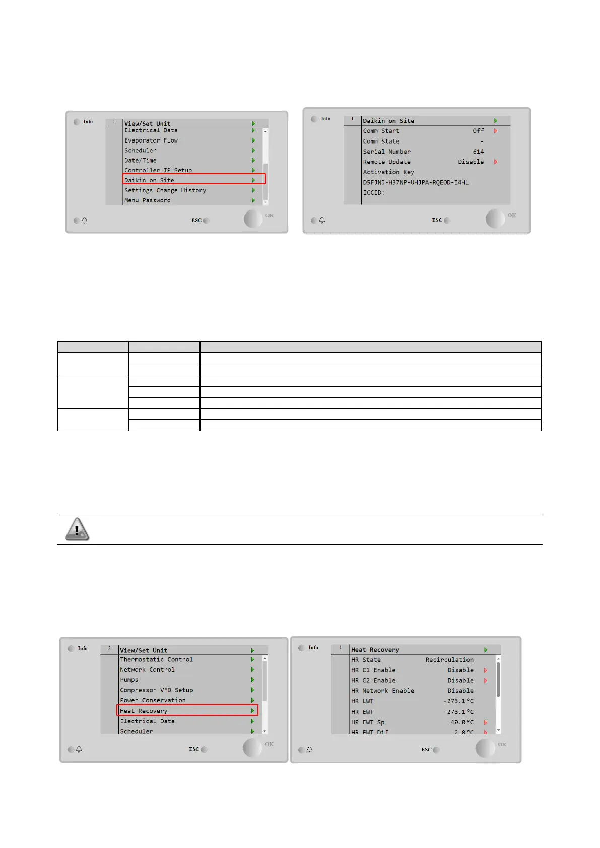 communicating the current Activation Key to Daikin company.