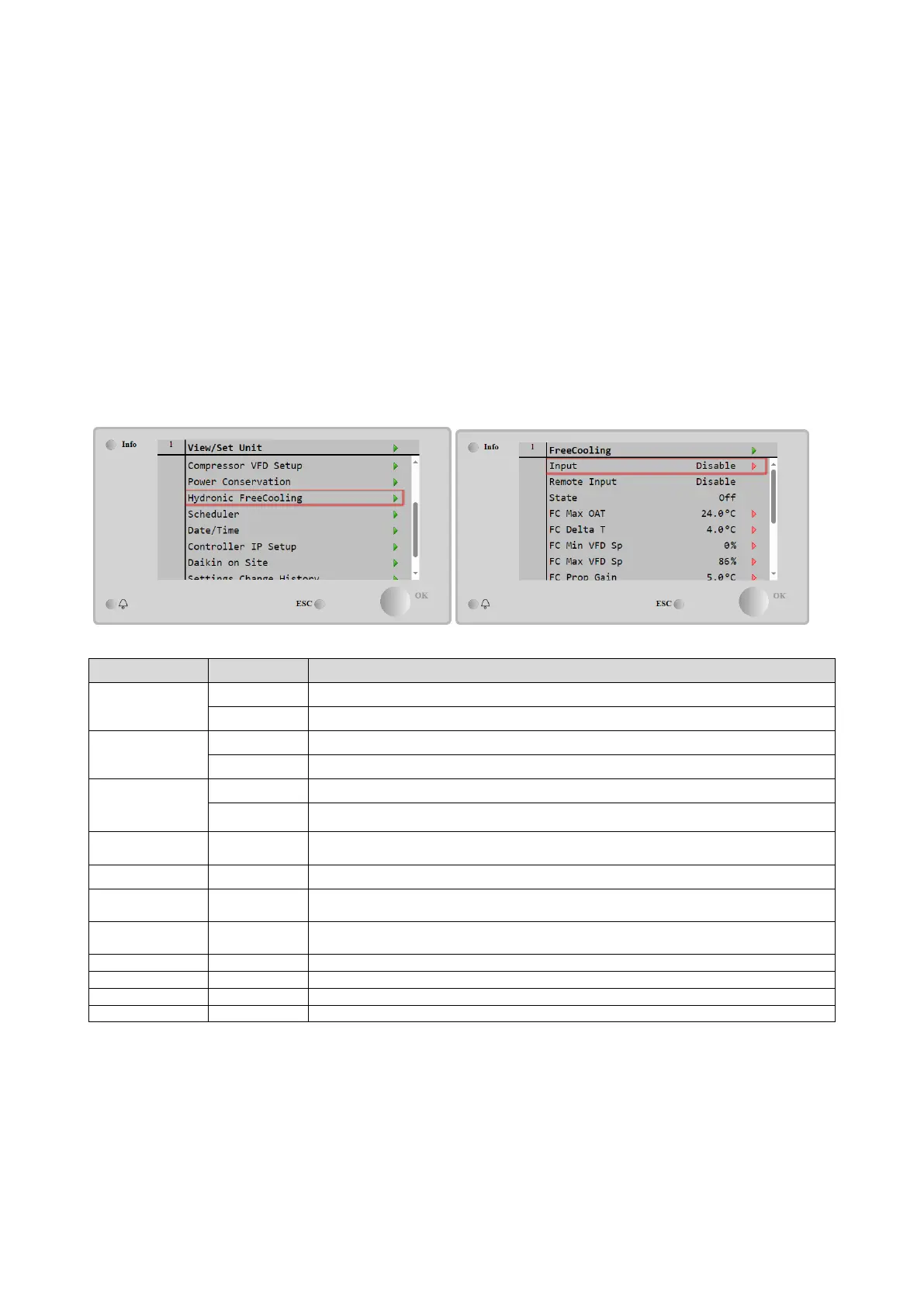 In order to enable the Freecooling functionality, the customer must set to Enable the “Input” parameter in the Freecooling
