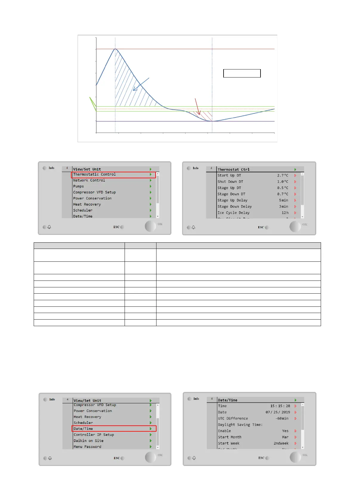 The unit controller can take stored the actual date and time, that are used for: