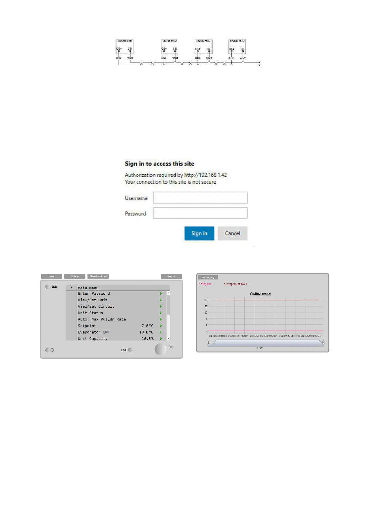 With a common web browser, a PC can connect with the unit controller entering the IP address of the controller or the host