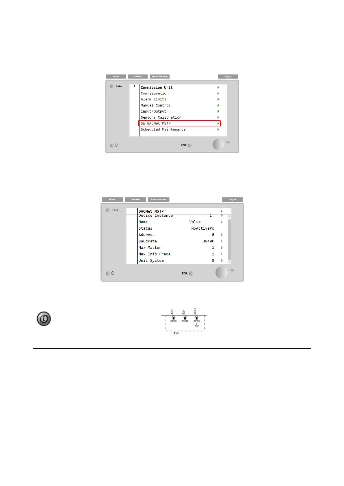 When the software option "BACNet MSTP" is activated and the controller is restarted, the communication protocol settings