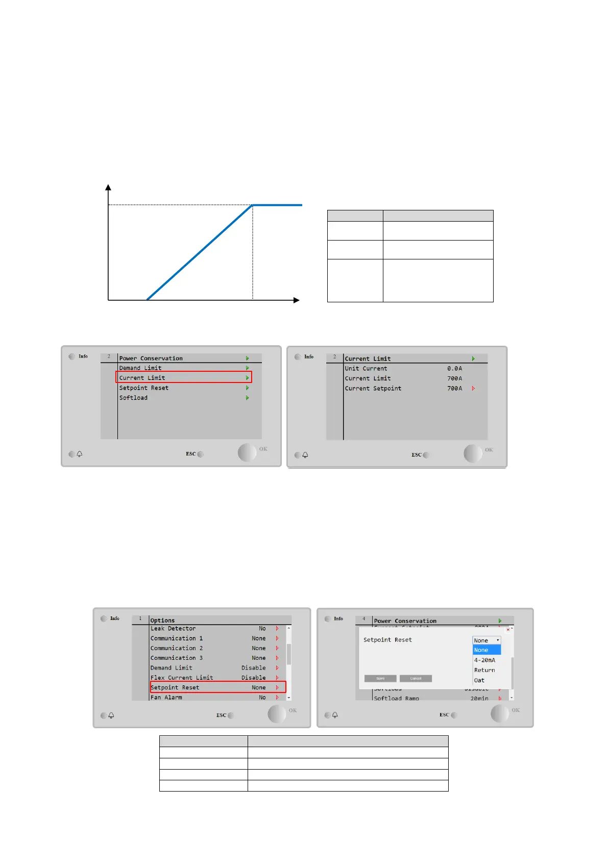 Current Limit, user can decrease the real limit using an external 4-20mA signal as indicate in the graph below. With