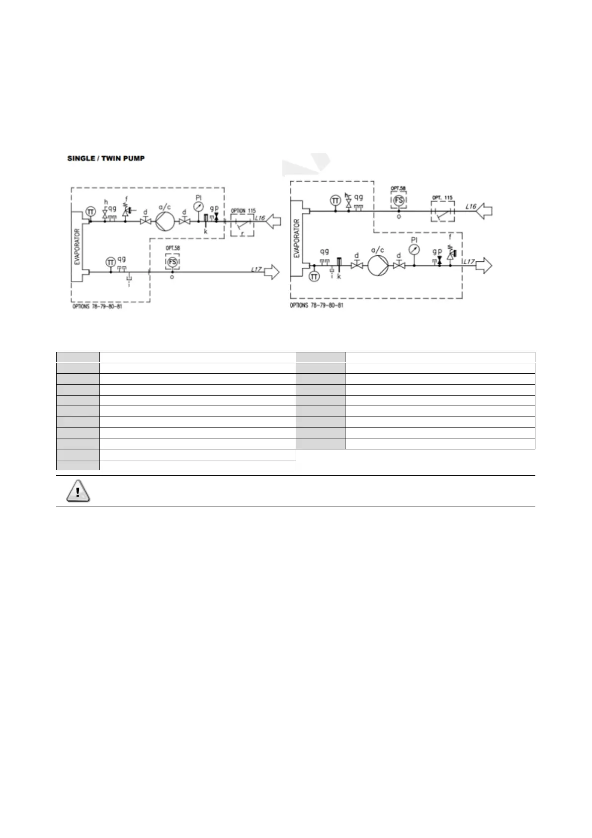 For some unit models, it may happen that pump kit is installed on an external skid, connected to the