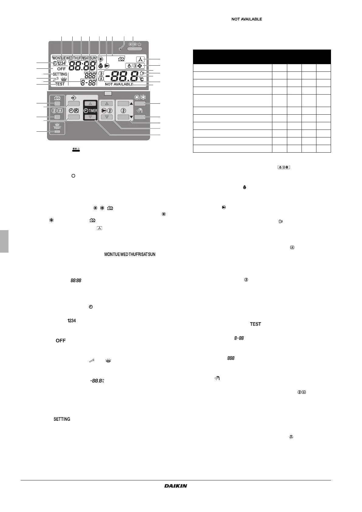 The ON/OFF button starts or stops the space cooling/heating.