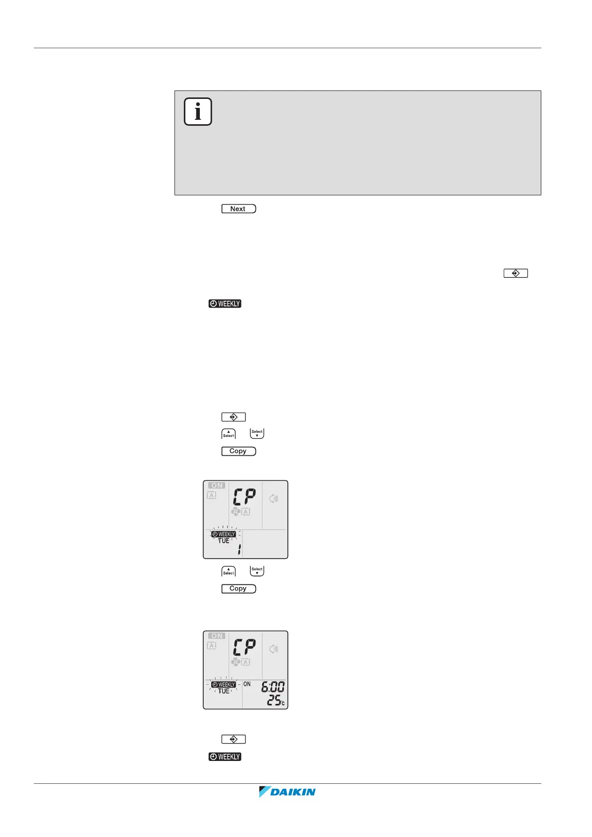 Note: The set temperature for the weekly timer is displayed only when setting the
