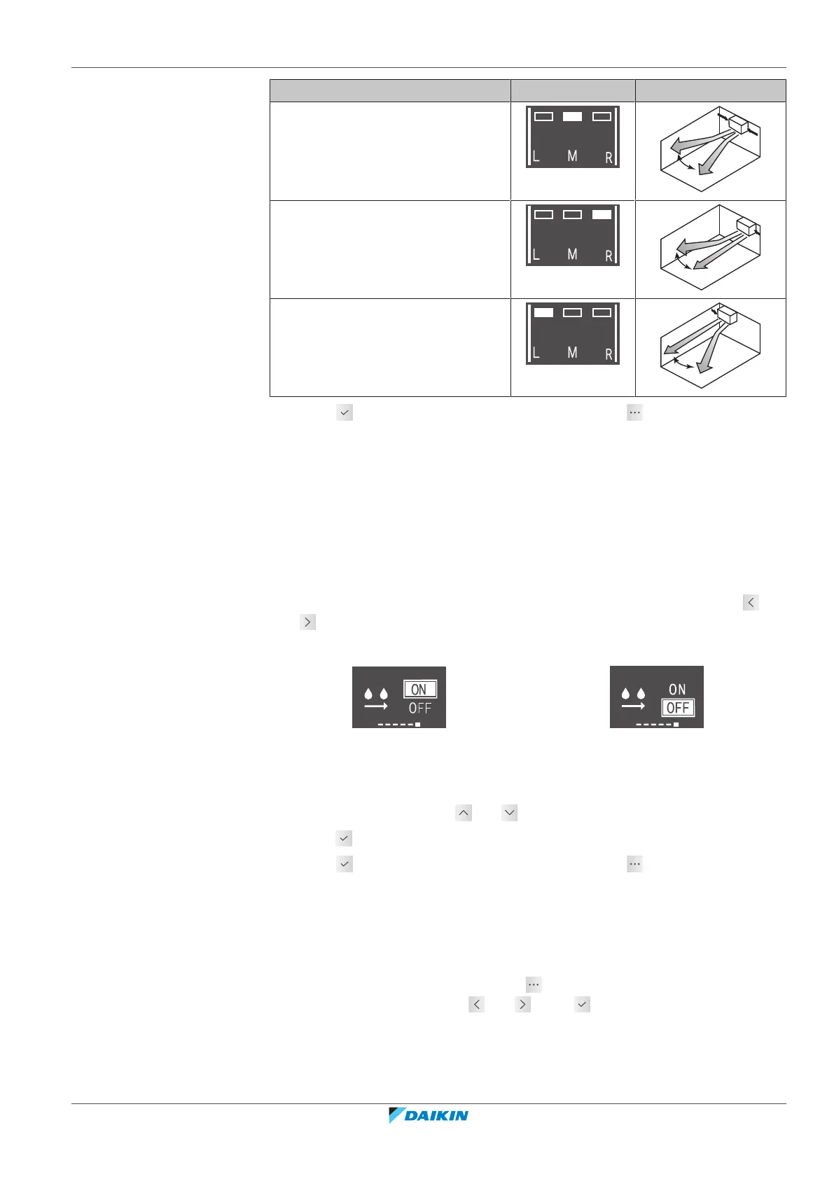 1 In the indoor unit setting menu, navigate to the keep dry setting using and