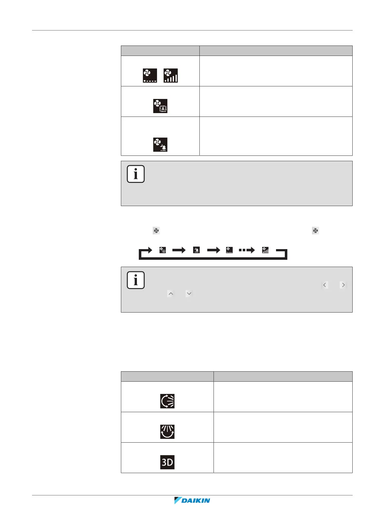 1 Press to enter the airflow rate carousel menu. When is pressed