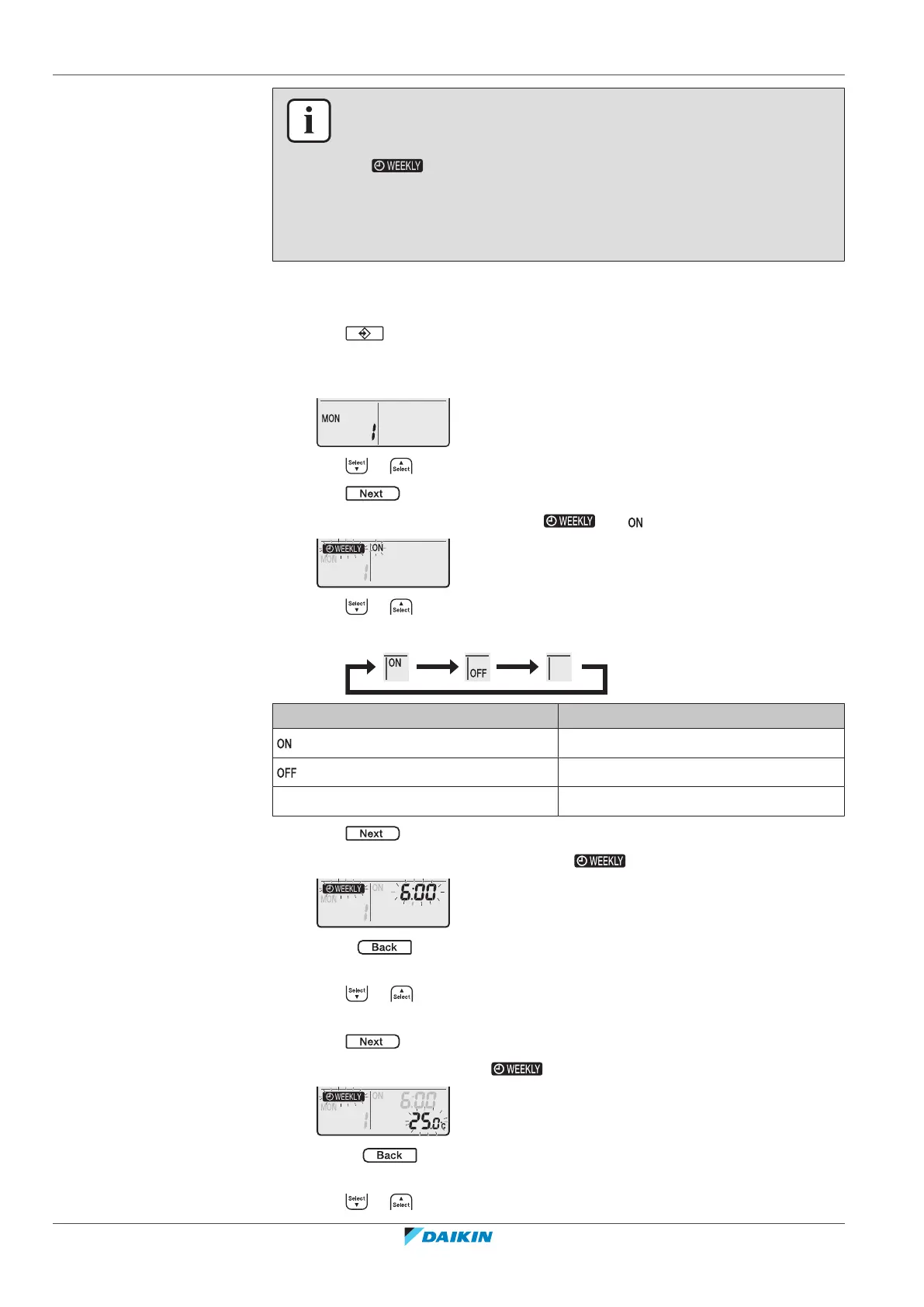 timer) can be set with the Weekly timer. Other settings are based on previous ON