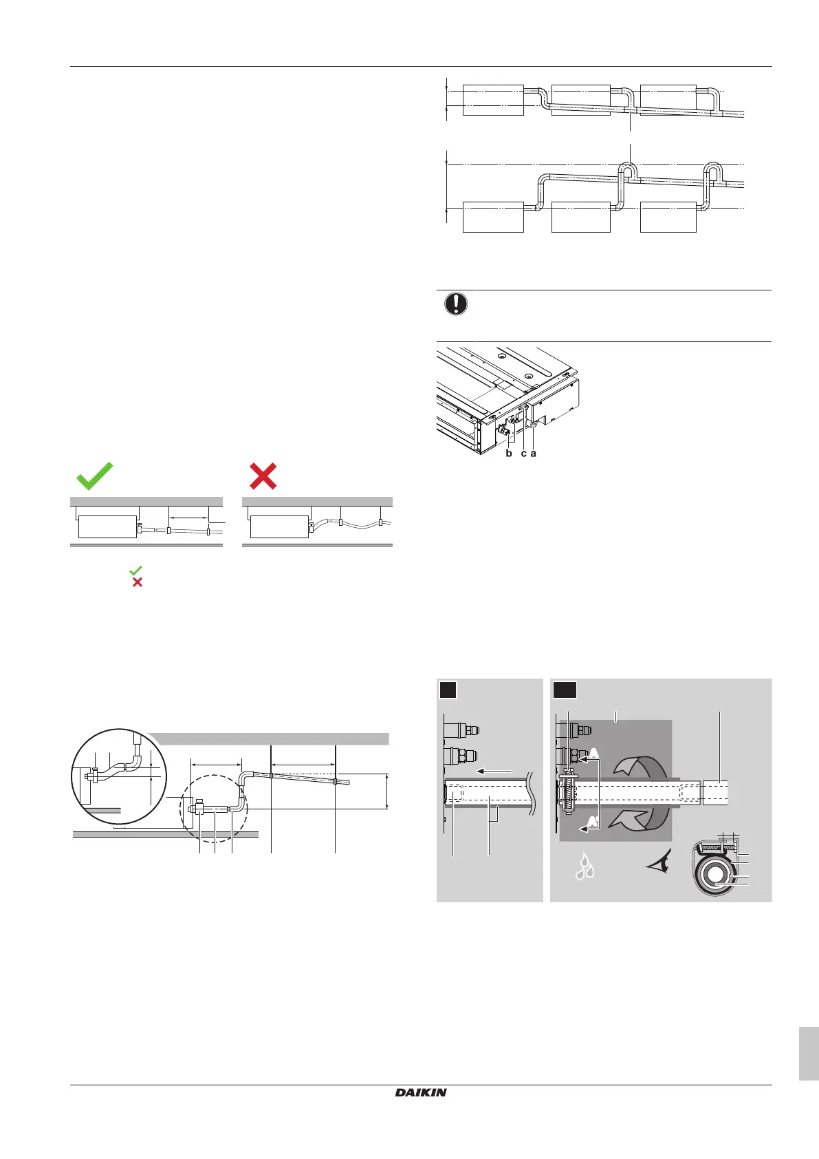 ▪ Rising piping: ≤300 mm from the unit, ≤625mm perpendicular