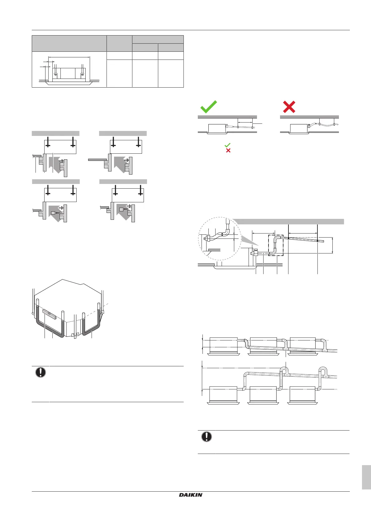 ▪ Rising piping: ≤300mm from the unit, ≤675 mm perpendicular