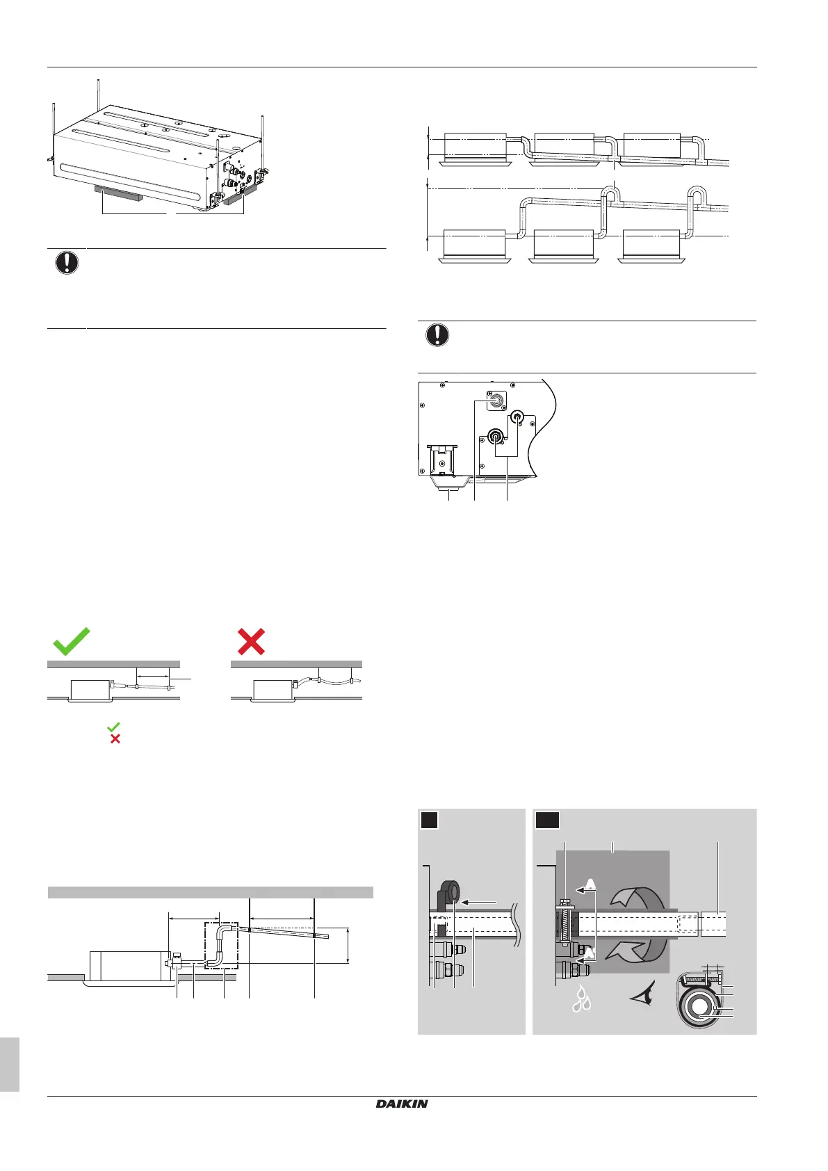 ▪ Rising piping: ≤300mm from the unit, ≤675 mm perpendicular