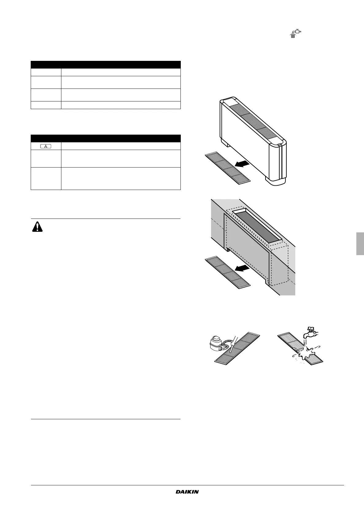 Clean the air filter when the display shows " " (TIME TO CLEAN