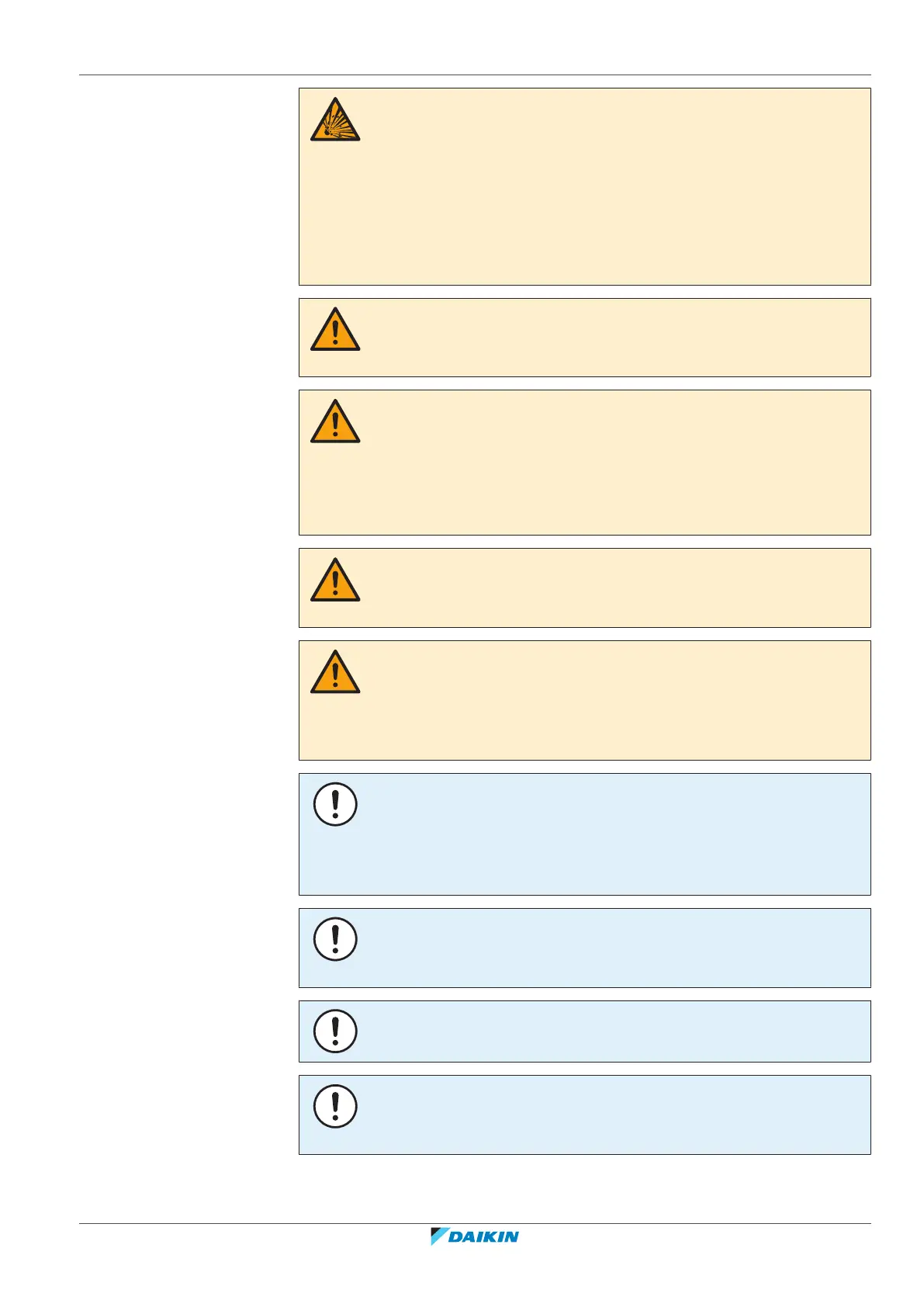 Make sure refrigerant piping installation complies with applicable legislation. In