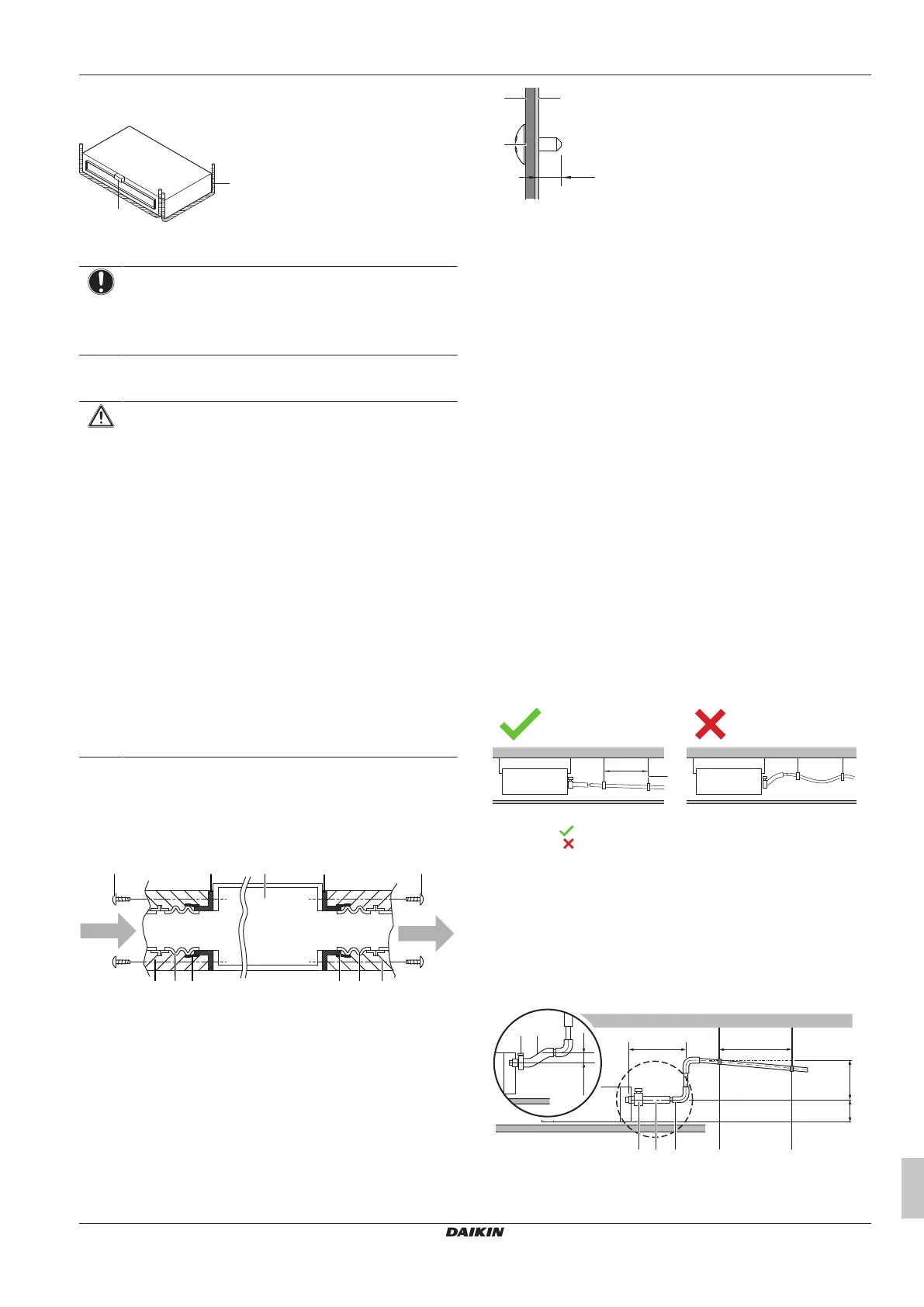 ▪ Rising piping: ≤300 mm from the unit, ≤625 mm perpendicular
