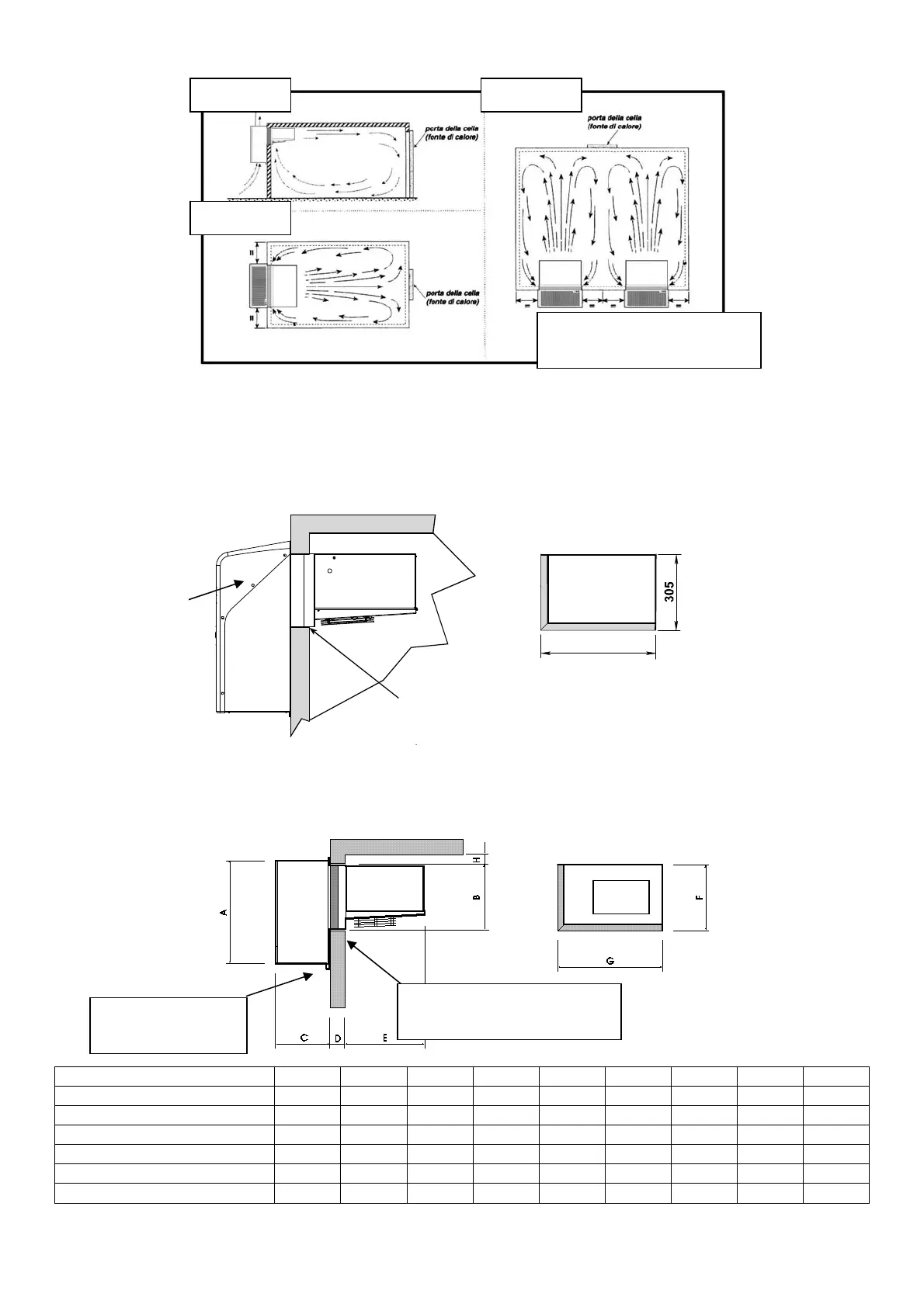 Faire un trou de dimensions appropriées sur la paroi de la chambre froide, voir figure.