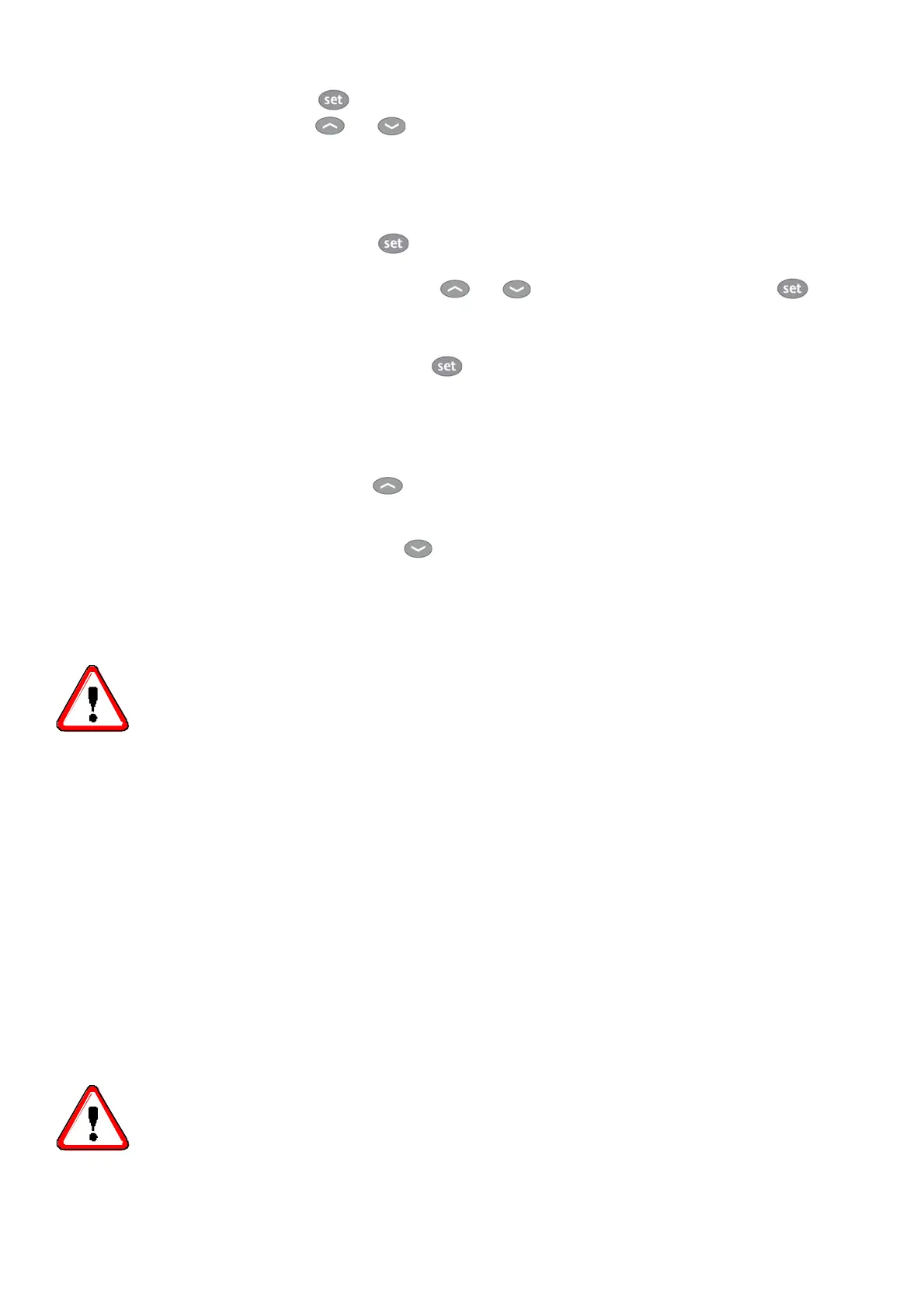 N.B.: Each time mains supply is turned off for more than 24 hours, it is necessary to repeat the pre-