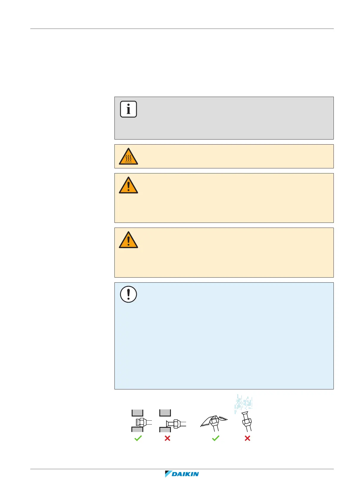 ▪ Protect the piping as described in the following table to prevent dirt, liquid or