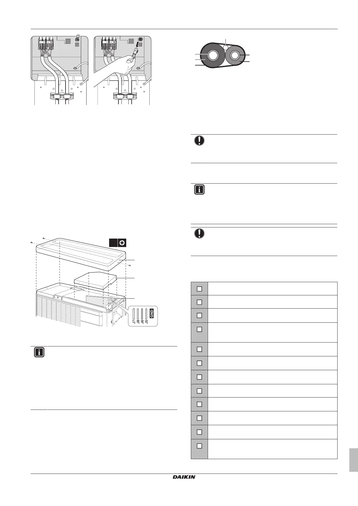 1 Insulate and fix the refrigerant piping and interconnection cable