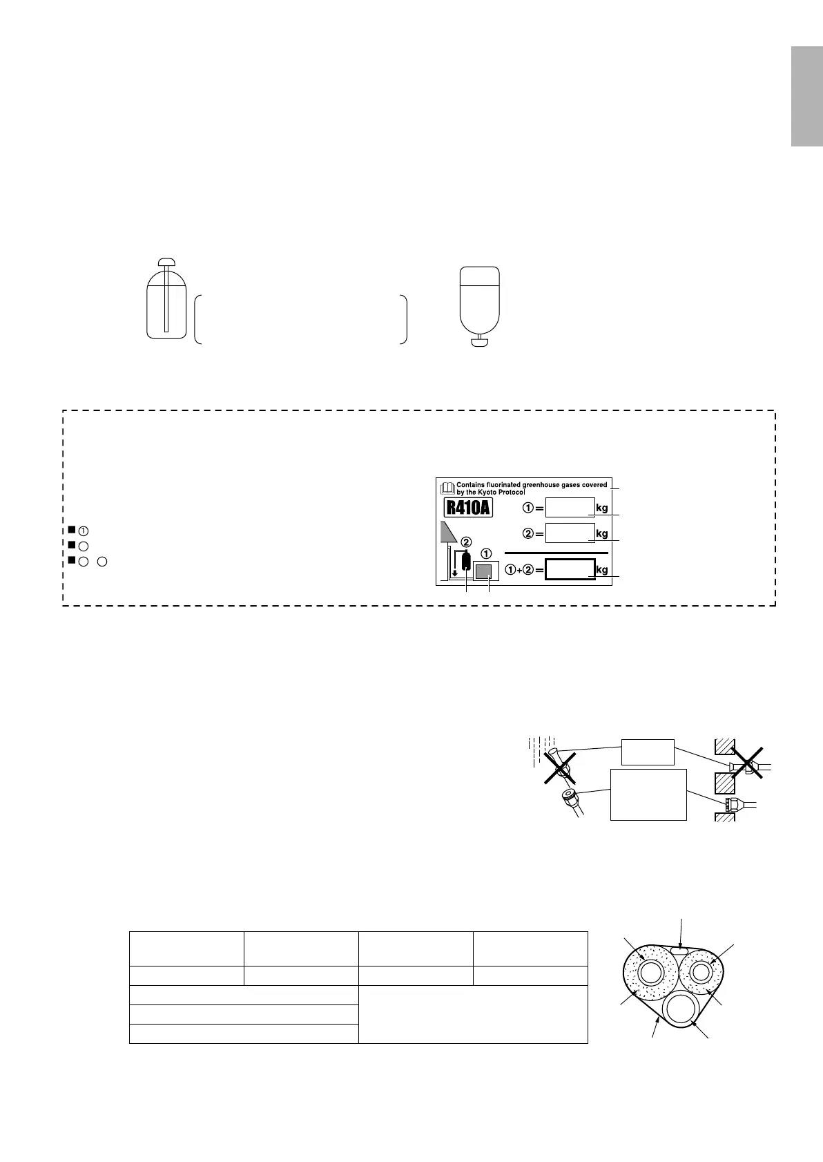 • Be sure to use the R410A tools to ensure pressure and to prevent foreign objects entering.
