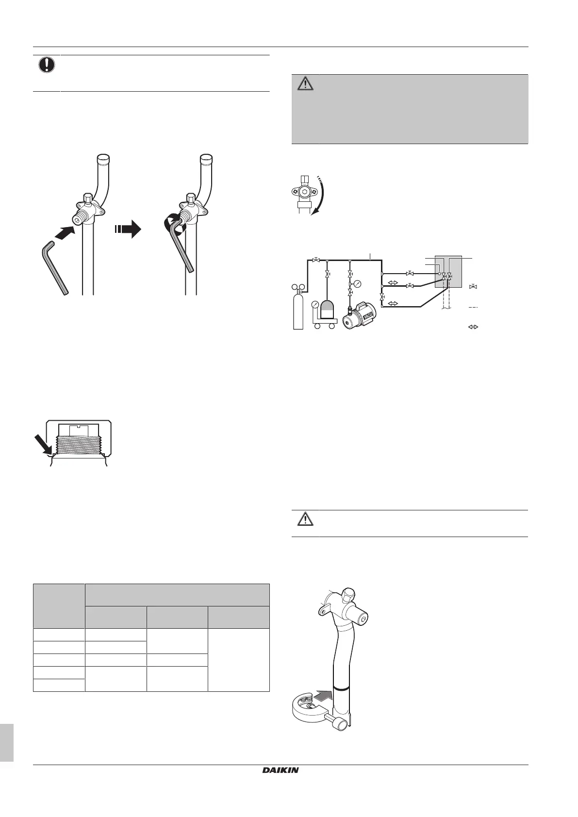 2 Insert a hexagon wrench into the stop valve and turn the stop