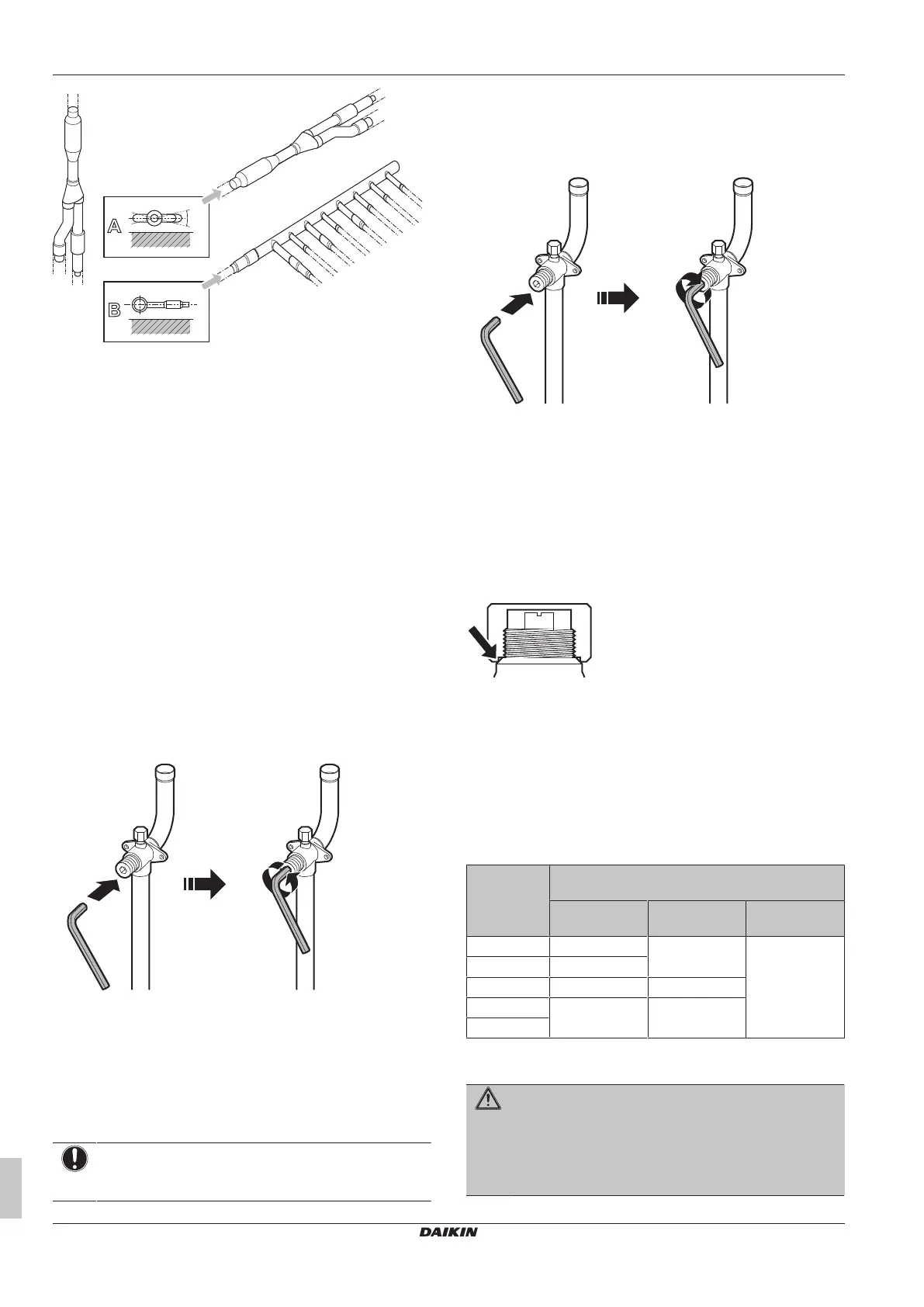 Inadequate torque may cause leakage of refrigerant and breakage of