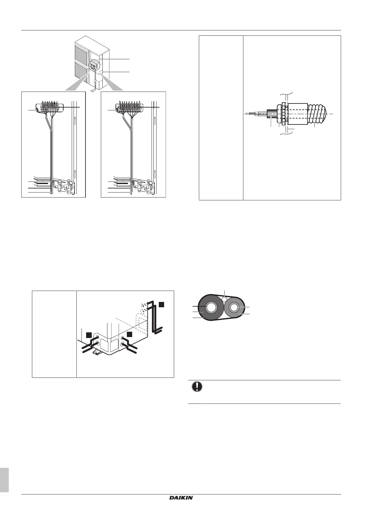 1 Insulate and fix the refrigerant piping and interconnection cable