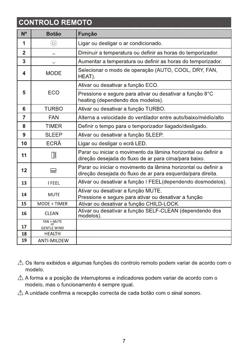 Para avar/desavar a função ANTI-MILDEW (ANTI-MOFO).