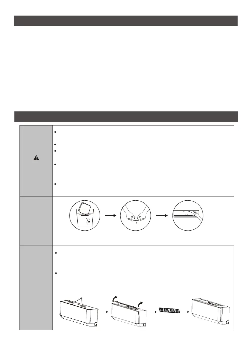 After removing the filter screen, do not touch the fins of the indoor unit to avoid